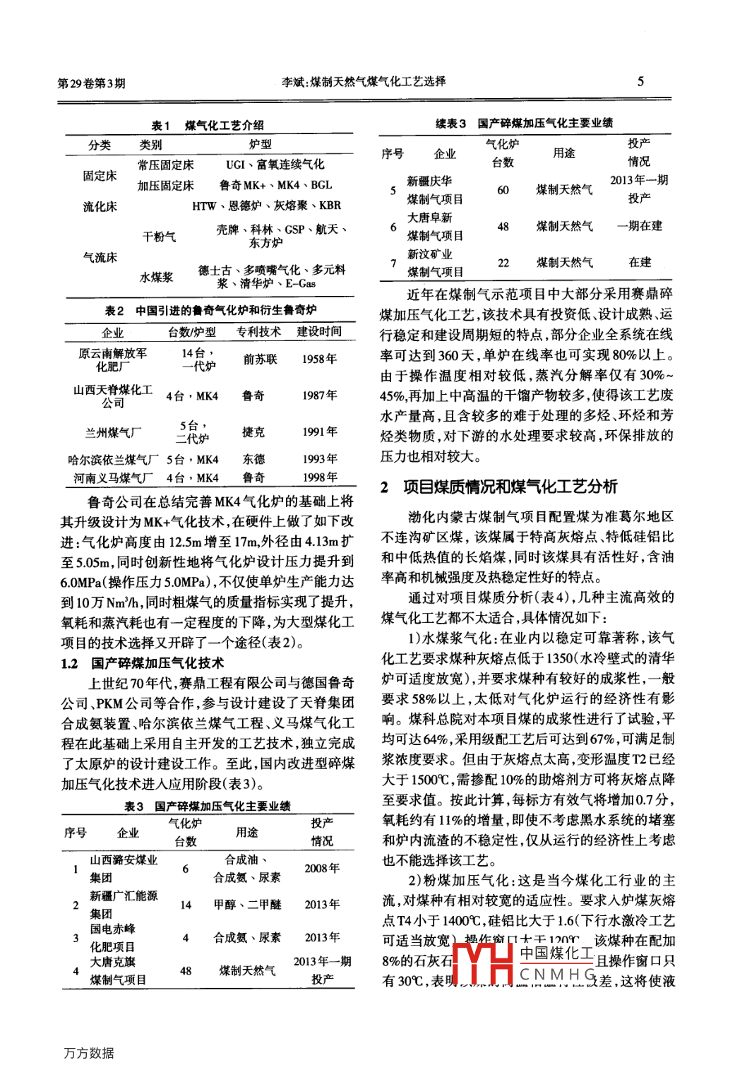 第29卷第3期天津化工Vol.29 No.32015年5月Tianjin Chemical IndustryMay.2015煤制天然氣煤氣化工藝選擇李斌(天津渤化永利化工公司煤化工事業(yè)部,天津30000)摘要:本文介紹了我國天然氣消費(fèi)現(xiàn)狀和渤化內(nèi)蒙煤制天然氣項(xiàng)目基本情況。以該項(xiàng)目工藝比選確定為主線,提出以煤定爐的工藝比選原則,在對(duì)項(xiàng)目煤質(zhì)進(jìn)行全面分析的基礎(chǔ)上,根據(jù)不同煤氣化工藝對(duì)該煤的適應(yīng)性,進(jìn)行了氣化工藝的比選和確定。關(guān)鍵詞:煤制天然氣;煤氣化工藝;碎煤加壓氣化;煤質(zhì)指標(biāo)doi: 10.3969/j.issn.1008- 1267.2015.03.002中圖分類號(hào):TQ546文獻(xiàn)標(biāo)志碼:A文章編號(hào):1008-1267(2015)03-0004-04魯奇爐MK4和MK5(1969~2008)、第四代魯奇1煤氣化工藝的介紹MK+。按照氣化爐的物料流動(dòng)方式來劃分,氣化工藝上世紀(jì)70年代,魯奇公司在第二代氣化爐的基主要分有三大類(表1):固定床、流化床和氣流床。礎(chǔ)上加以改進(jìn),形成了MK4型氣化爐。MK4型是當(dāng)固定床技術(shù)分常壓和加壓技術(shù),基于篇幅,本文只介今世界上使用最多的爐型,該爐型可氣化除強(qiáng)黏結(jié)紹加壓固定床氣化。性煙煤外的幾乎所有煤種,且生產(chǎn)能力及在線率得1.1 魯奇氣化技術(shù)(魯奇MK4和MK+)以大幅提升,最高分別達(dá)到65000Nm2/h和93%,產(chǎn)魯奇FBDB煤氣化技術(shù)從上世紀(jì)30年代至今的品單耗也有所下降。.發(fā)展經(jīng)歷大概可以分為四個(gè)階段:第一代魯奇爐.收稿日期:2015- 03-11(1936 ~ 1954)、第二代魯奇爐(1952 ~ 1965)第三代作者簡(jiǎn)介:李斌( 1973-),男,本科,高I,長(zhǎng)期從事煤氣化的技術(shù)和管理工作[D].中國礦業(yè)大學(xué), 2011.[12]衣麗霞,王學(xué)魁扎布耶鹽湖冷凍后鹵水常溫蒸發(fā)(20C)析鹽[2]禹文龍北大池鹽湖鹵水析鹽規(guī)律的研究[]鹽業(yè)與化工.規(guī)律[]海湖鹽與化工, 2002,31(4):4-8.2010, 39(3); 33-35.[13]桑世華,卜令忠侯彩紅等扎布耶鹽湖鹵水-10C冷凍后0吣[3]徐文芳,沙作良,王彥飛,廖耀華.查波措鹽湖鹵水凍硝過程的等溫蒸發(fā)實(shí)驗(yàn)研究[J].成都理工大學(xué)學(xué)報(bào).2010,37(5); 518- -522研究[]鹽業(yè)與化工2011, 40(6); 8-14.[ 14 ]曾英,林曉峰,盂世軍四元體系Li+,K +//CO3-,[4]陳麗芳,陳俠,孫之南.達(dá)板城鹽湖鹵水綜合利用工藝研究[].鹽B.0號(hào)-H2O 273 K介穩(wěn)相平衡研究[]化學(xué)工程.2008, 3619);:業(yè)與化工.2006, 35(5): 5-8.47- 50.[5]李樹生,靳志玲,等.定邊鹽湖鹵水析鹽規(guī)律的研究[].鹽業(yè)與[15]王瑞麟,曾英.四元體系Na: /CIr ,CO子,B,03 -H20273K介化工.2008, 37(5):1-16.穩(wěn)相平衡研究[J].礦物巖石,2008, 28(4):109-112.[6]索智錄,張占良.東臺(tái)吉乃湖鹵水脫鈉后冬季鹽田生產(chǎn)最佳工[ 16]曹付家.五元體系Na" /CI , CO32 , SsO.*, B.0-*-H20273 K介穩(wěn)藝研究[J]鹽業(yè)與化工.2009, 39(2); 23-25.相平衡實(shí)驗(yàn)研究[D],成都:成都理工大學(xué), 2012.[7]目亦功湖鹽在低溫下鹵水濃縮析鹽規(guī)律探討[J].科技信息.[ 17 ]烏志明,鄧小川鹽水冷凍淡化研究[].無機(jī)鹽工業(yè),2001, 332013, 15.(2):6-8.[8]杜鵑,袁建軍,張愛群.硫酸鈉型鹽礦鹵水冷凍法脫巰的研究[ 18 ]烏志明,鄭綿平,劉喜方,等.多格錯(cuò)仁鹽湖鹵水冷凍、日曬兩[]中國井礦鹽2008, 39(3); 10-12步法濃縮制鹵研究[J].無機(jī)化學(xué)學(xué)報(bào), 2012, 285);99 1000.[9]付振海,張志宏,馬艷芳,等硫酸鹽型鹵水低溫處理及其液相[ 19 ]張霞,黃雪莉,等.含硝酸鹽水鹽體系降溫過程研究[J].無機(jī)鹽蒸發(fā)析鹽規(guī)律的理論研究[].無機(jī)鹽工業(yè)2013, 45(2): 29 -32.工業(yè), 2014, 46(4): 18-21.[ 10 ]馬林,尚小剛,劉春娥,等硫酸鹽型鹵水降溫新鹽特征初步分[ 20 ]張霞.新疆含硝酸鹽鹵水低溫相平衡研究[D]新疆:新疆大析[].青海科技. 2008, 3:23-. -26.學(xué).2014.中國煤化工.[11]張永生,乜貞,鄭綿平.富含碳酸鹽型鹵水在系列冷凍溫度下[21 ]高世揚(yáng),.HCNMHG鹵水的冷凍實(shí)驗(yàn)[1組成演變[]海湖鹽與化工, 2001, 30(1):3-6.鹽湖研究,.第29卷第3期李斌:煤制天然氣煤氣化工藝選擇表1煤氣化工藝介紹續(xù)表3國產(chǎn)碎煤加壓氣化主要 業(yè)績(jī)分類類別爐型氣化爐投產(chǎn)序號(hào)企業(yè)用途固定床常壓固定床UGI、富氧連續(xù)氣化臺(tái)數(shù)2013年一-其情況加壓固定床魯奇MK+、MK4、BCL煤制氣項(xiàng)目煤制天然氣流化床HTW、恩德爐、灰熔聚、KBR大唐阜新干粉氣殼牌、科林、GSP、航天、煤制天然氣-期在建東方爐氣流床新汶礦業(yè)在建水煤漿.德士古、多噴嘴氣化、多元料漿、清華爐、E-Gas近年在煤制氣示范項(xiàng)目中大部分采用賽鼎碎表2中國引進(jìn)的魯 奇氣化爐和衍生魯奇爐煤加壓氣化工藝,該技術(shù)具有投資低設(shè)計(jì)成熟、運(yùn)臺(tái)數(shù)/爐型專利技術(shù) 建設(shè)時(shí)間行穩(wěn)定和建設(shè)周期短的特點(diǎn),部分企業(yè)全系統(tǒng)在線原云南解放軍二代爐前蘇聯(lián)1958年率可達(dá)到360天,單爐在線率也可實(shí)現(xiàn)80%以上?;蕪S由于操作溫度相對(duì)較低,蒸汽分解率僅有30%~山西天脊煤化工4臺(tái),MK4魯奇1987年45%,再加上中高溫的干餾產(chǎn)物較多,使得該工藝廢公司水產(chǎn)量高,且含較多的難于處理的多烴、環(huán)烴和芳蘭州煤氣廠捷克1991年烴類物質(zhì),對(duì)下游的水處理要求較高,環(huán)保排放的哈爾