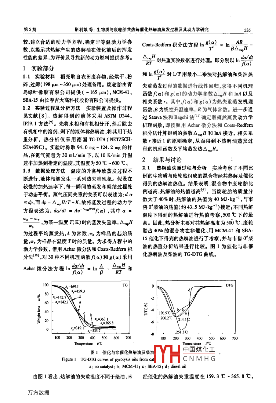生物質(zhì)與廢輪胎共熱解催化熱解油蒸發(fā)過程及其動力學研究