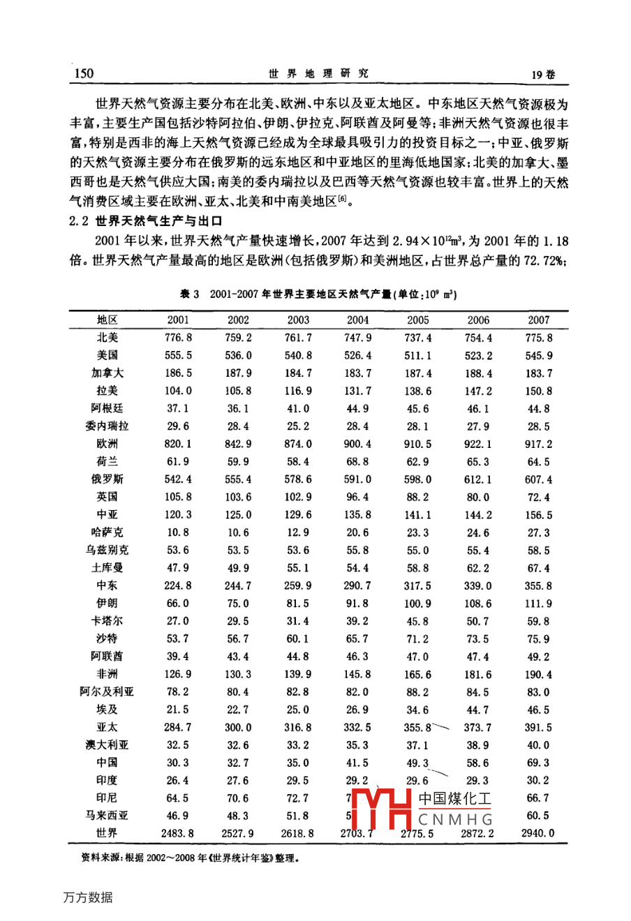 世界地理研究第19卷第2期vol.19,N.22010年3月WORLD REGIONAL STUDIESMay.,2010中國天然氣進口的空問格局分析王寧,桑廣書(浙江師范大學(xué)地理與環(huán)境科學(xué)學(xué)院浙江金華321004摘要:文章從中國發(fā)展低碳經(jīng)濟的需要出發(fā)指出天然氣是一種理想的高效清潔能源,是發(fā)展低碳能源的首選。通過分析中國天然氣供不應(yīng)求、世界天然氣供過于求的市場現(xiàn)狀,以及世界天然氣資源的分布,提出中國從其周邊國家進口天然氣符合經(jīng)濟高效原則。中國從國外進口天然氣主要有四條路線,即中亞輸入通道;緬甸輸入通道;俄羅斯輸入通道;海上輸入通道(重點分析了澳大利亞輸入通道)。文章對此四條路線格局及其地緣優(yōu)勢進行了分析,認為中國天然氣進口的空間格局已基本形成,這將對我國未來發(fā)展低碳經(jīng)濟和保護環(huán)境起重要的促進作用。關(guān)鍵詞:天然氣;進口;空間格局;中國中圖分類號:F124.5文獻標識碼:A哥本哈根聯(lián)合國氣候大會之后,“節(jié)能減排”成為各國應(yīng)對氣候變化的共識。中國政府做出減排承諾,到2020年單位GDP二氧化碳排放量比2005年下降40%至45%,并作為約束性指標,納入國民經(jīng)濟和社會發(fā)展中長期規(guī)劃。但是,在目前中國的能源消費中,清潔能源核電、水電、風(fēng)電等所占比重僅為8.9%。而以煤、石油、天然氣為主導(dǎo)的化石能源占了90%以上其中煤炭的比重更高達68.%。中國的能源稟賦決定了在短時間內(nèi)難以形成清潔能源占主導(dǎo)地位的能源結(jié)構(gòu)。在傳統(tǒng)的化石能源中,天然氣燃燒產(chǎn)生的污染物較少,燃燒后產(chǎn)生的溫室氣體只有煤炭的1/2、石油的2/3,對環(huán)境造成的污染遠遠小于煤炭和石油,且天然氣熱值高達8500大卡遠高于煤氣熱值,可見天然氣是一種理想的高效清潔的能源2,因此提高天然氣在我國能源結(jié)構(gòu)中的比例,將是我國調(diào)整能源結(jié)構(gòu),發(fā)展低碳能源的首選。從世界天然氣生產(chǎn)和消費看(表1),21世紀以來世界天然氣總體供過于求,而我國雖然近年來天然氣開采量在不斷增加,但消費量增長更快,處于供不應(yīng)求的狀態(tài)。據(jù)預(yù)測,到2020年中國天然氣需求量將超過2×10m3,缺口將達到1×10m3。超過50%的對外依存度,將給中國的能源發(fā)展提出新的課襄12001-2007年世界天然氣產(chǎn)量與消費量20052006產(chǎn)量/109m32483.82527.92618.82703.72775.5287222940.0消費量/109m2455.0253352590.92689.22765.22834.4292l.9資料來源:根據(jù)2002~2008年《世界統(tǒng)計年鑒》整理中國煤化工收稿日期:2009-12-21:修訂日期:2010-05-03基金項目:北京市科委軟科學(xué)課題成果CNMHG作者簡介:王寧(1985-),女碩士研究生。主要從事能源地理研究。E-mail:wanning8504020163.com通訊作者:桑廣書(1963-),男,博士,教授。主要從事自然資源、地貌學(xué)等教學(xué)與研究。2期王寧等:中國天然氣進口的空間格局分析題。鑒于此,本文從我國發(fā)展低碳經(jīng)濟的需要出發(fā),立足天然氣供不應(yīng)求的現(xiàn)狀,對我國天然氣進口的空間格局進行分析。中國天然氣供需狀況1.1中國的天然氣資源中國利用天然氣資源的歷史較早,但真正的天然氣工業(yè)始于新中國成立之后。20世紀50年代以來,我國在四川盆地發(fā)現(xiàn)了豐富的天然氣資源四川成為我國重要的天然氣生產(chǎn)基地。接著又在柴達木盆地、鄂爾多斯盆地、準格爾盆地、吐哈盆地、東海海域等陸續(xù)發(fā)現(xiàn)了儲量可觀的天然氣田進入21世紀以來隨著勘探開發(fā)技術(shù)水平的提高中國天然氣工業(yè)發(fā)展速度再次加快,探明儲量不斷增長,產(chǎn)量快速上升,海外合作穩(wěn)步推進輸配氣系統(tǒng)配套發(fā)展,消費市場逐步擴大,2007年天然氣在中國一次能源消費中的比例達到3.4%,天然氣工業(yè)正逐步成為重要的新型能源產(chǎn)業(yè)。目前中國石化礦權(quán)塊內(nèi)擁有的天然氣資源面積約110km2:其中,以天然氣資源勘探為主的礦權(quán)區(qū)塊和油氣資源共探礦權(quán)區(qū)塊221l個,面積約6.5×10%km2,占中石化探礦權(quán)總面積的65%,主要集中在四川盆地及其周緣、塔里木盆地鄂爾多斯盆地北部渤海灣盆地南部、松遼盆地南部和東海陸架盆地等據(jù)2003年國土資源部資源評價結(jié)果,中石化探區(qū)天然氣資源量為1.742×10m3,占全國的天然氣總資源量的30%。其中東部區(qū)1.77×10m,中西部區(qū)8.4×10m3,南方區(qū)494×10m,海域2.28×10"m。截至207年,中國累計探明天然氣地質(zhì)儲量5.86×10%m3,探明可采儲量3.6110m。盡管如此,與美國等天然氣勘探成熟國家相比,中國天然氣資源探明率僅為10.46%,探明程度依然較低,未來仍有較大的勘探潛力。1.2中國的天然氣生產(chǎn)與需求中國天然氣的生產(chǎn)一直在不斷提高,但消費量也有增無減,現(xiàn)在處于供不應(yīng)求的狀態(tài)(表2)。分析表2可知,2001年和2002年中國的天然氣供求關(guān)系基本平衡,國內(nèi)生產(chǎn)基本滿足國內(nèi)消費需求。但從2003年開始,由于消費量的快速上升,國內(nèi)生產(chǎn)已不能滿足國內(nèi)消費供需缺口為2452×10%m3,2004~2006年供需缺口雖有所減小但仍存在供應(yīng)缺口2006年缺口為8.47×10m,到了2008年擴大到555×10和m,是2006年的6倍。在目前我國經(jīng)濟快速發(fā)展和節(jié)能減排的大背景下,天然氣缺