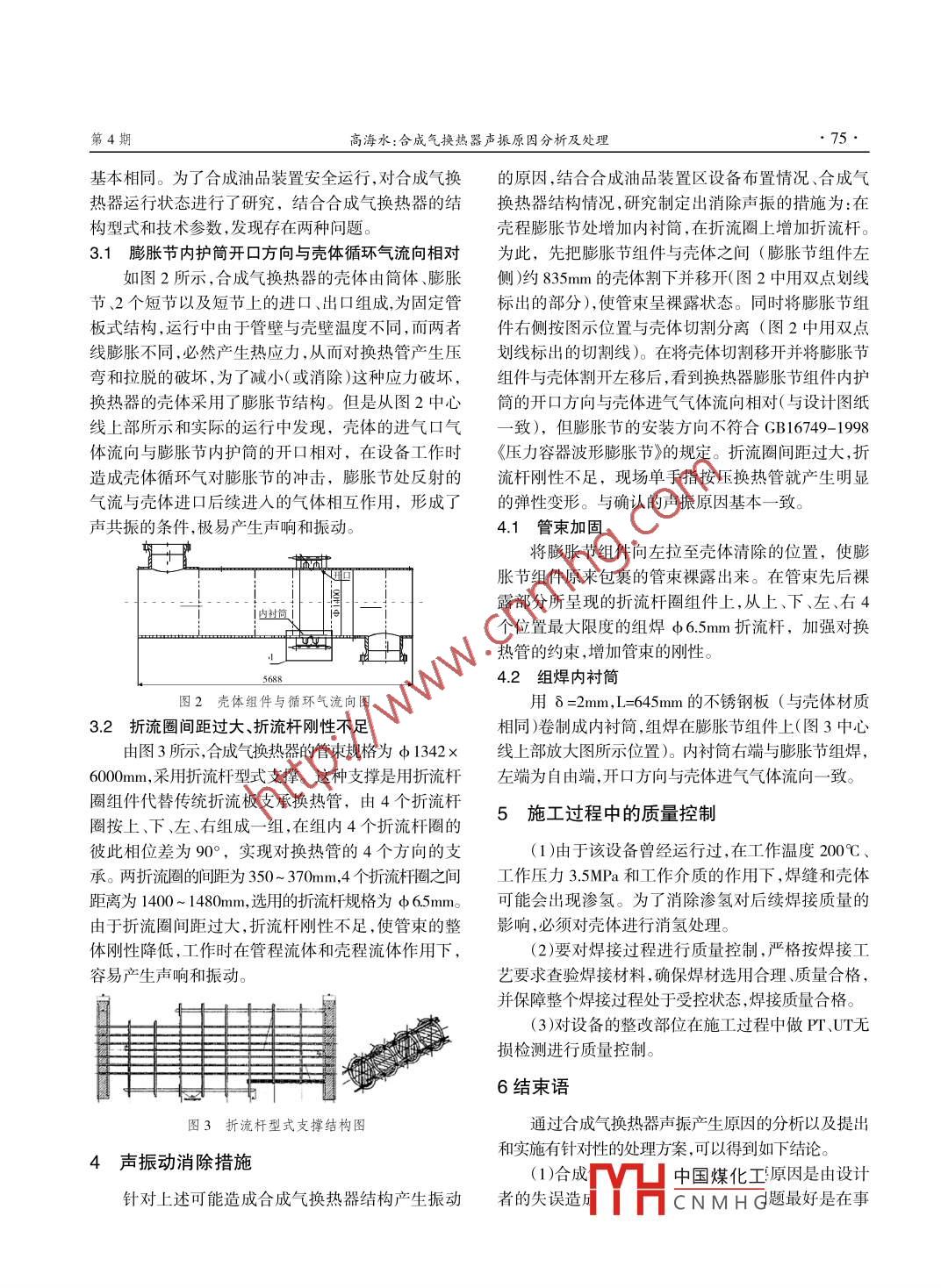 合成氣換熱器聲振原因分析及處理