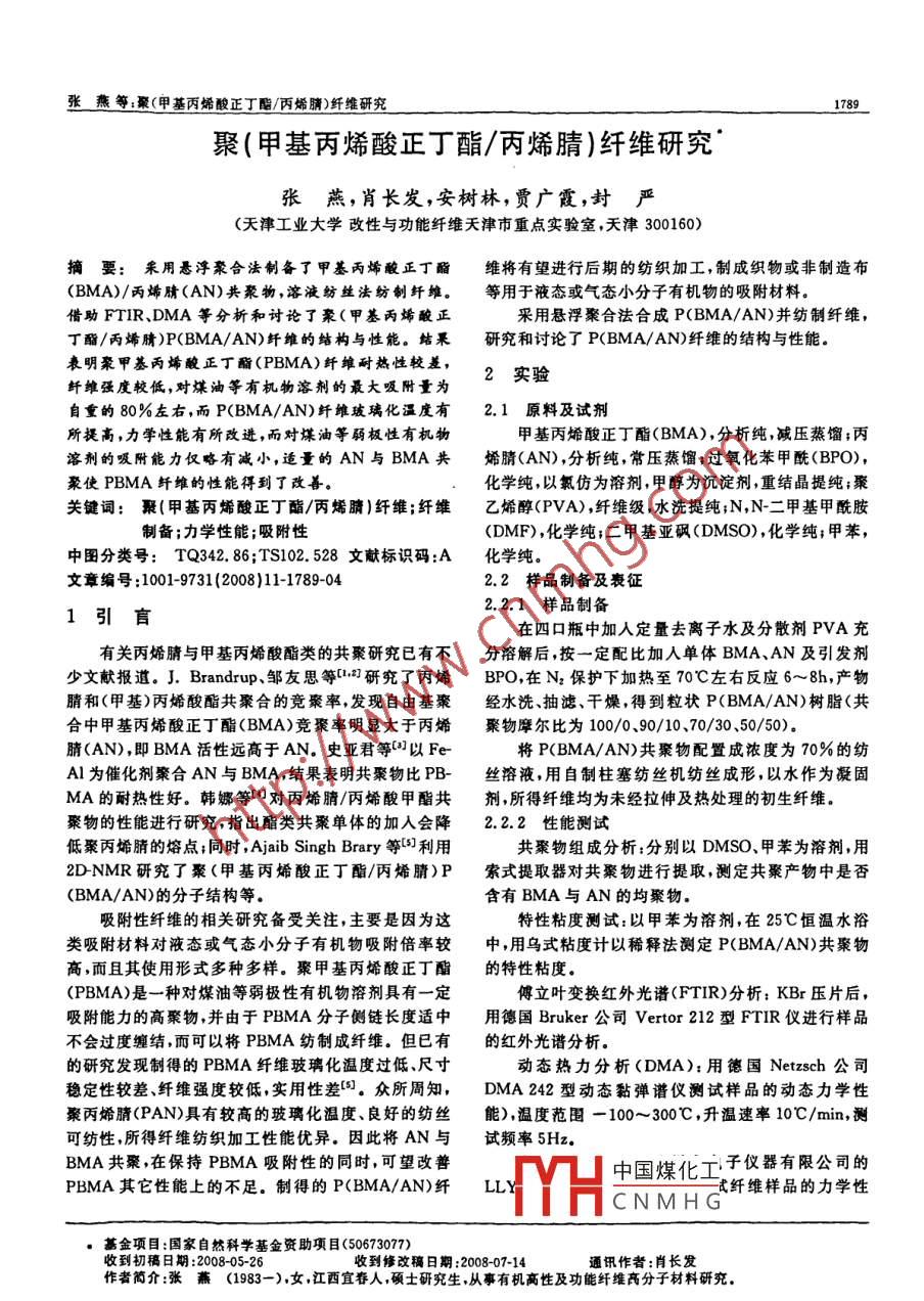 聚(甲基丙烯酸正丁酯/丙烯腈)纖維研究