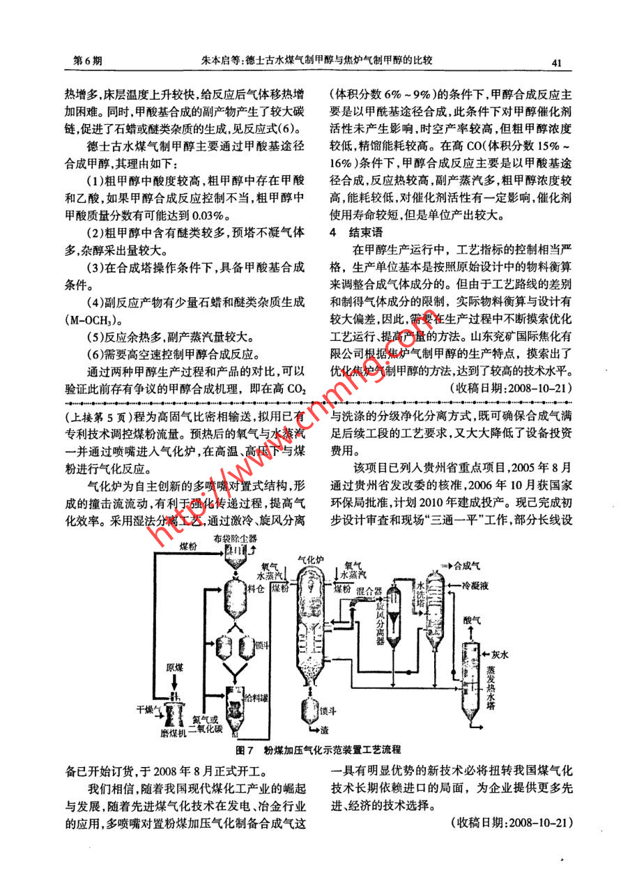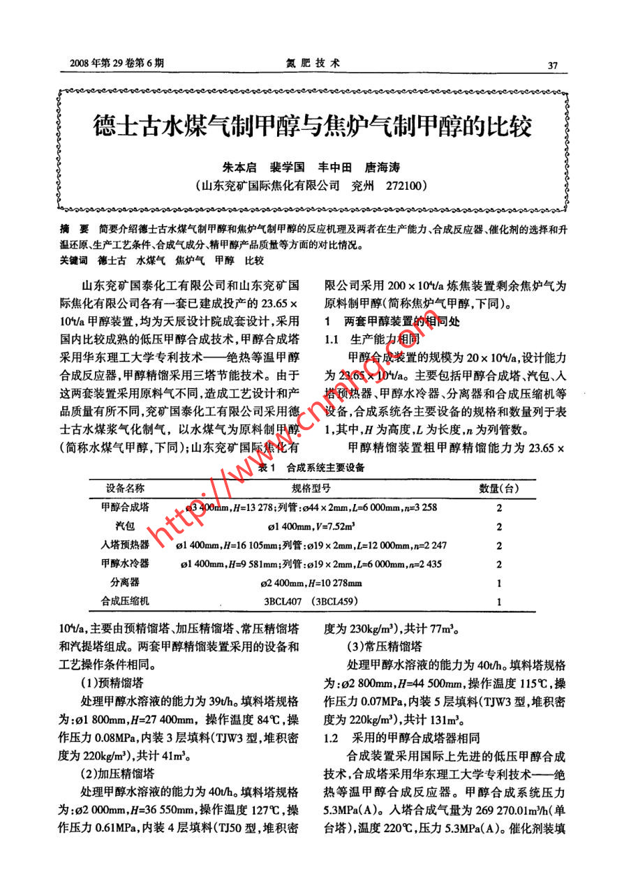 德士古水煤氣制甲醇與焦?fàn)t氣制甲醇的比較
