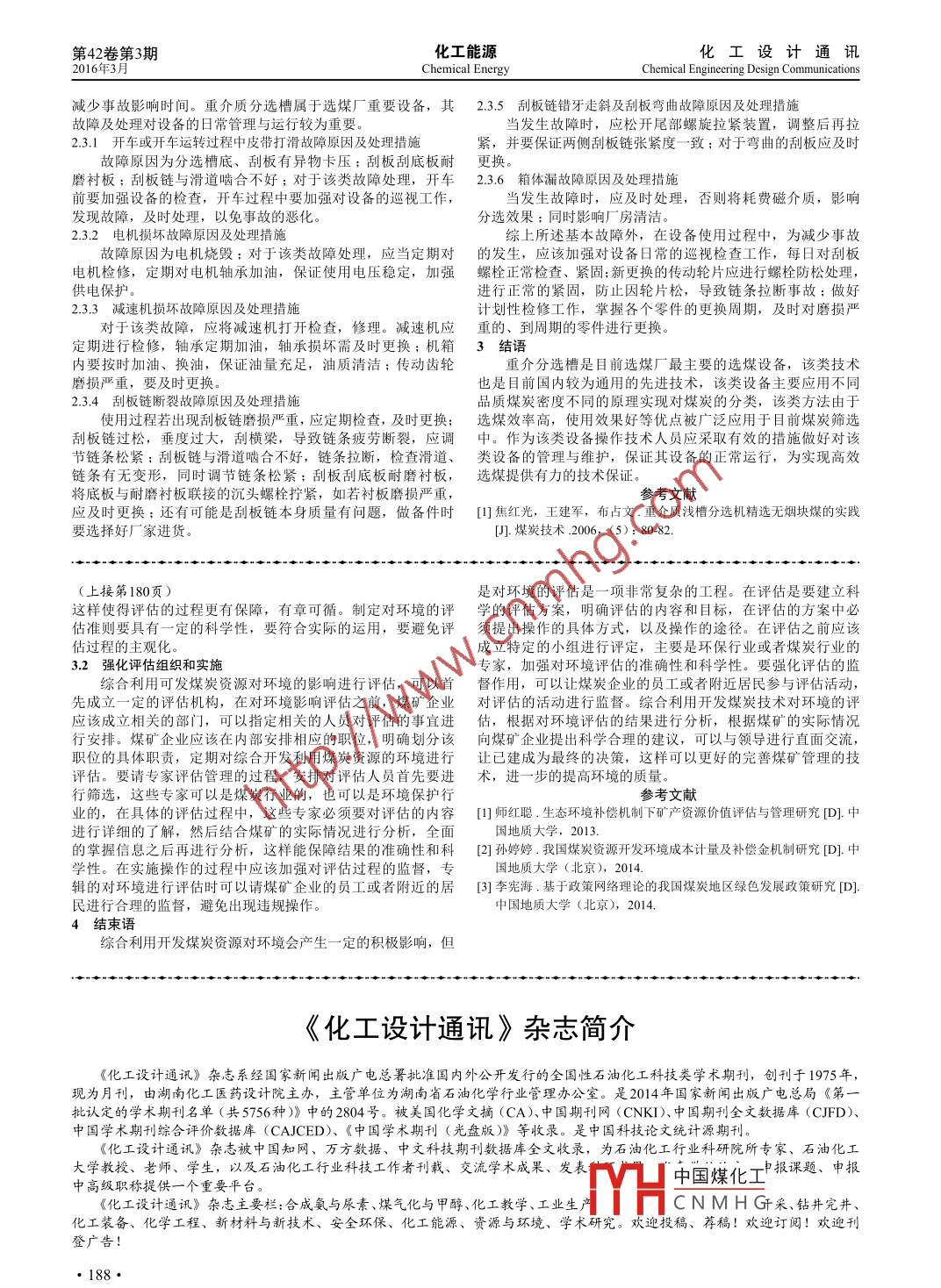 - 期刊名字:化工設計通訊