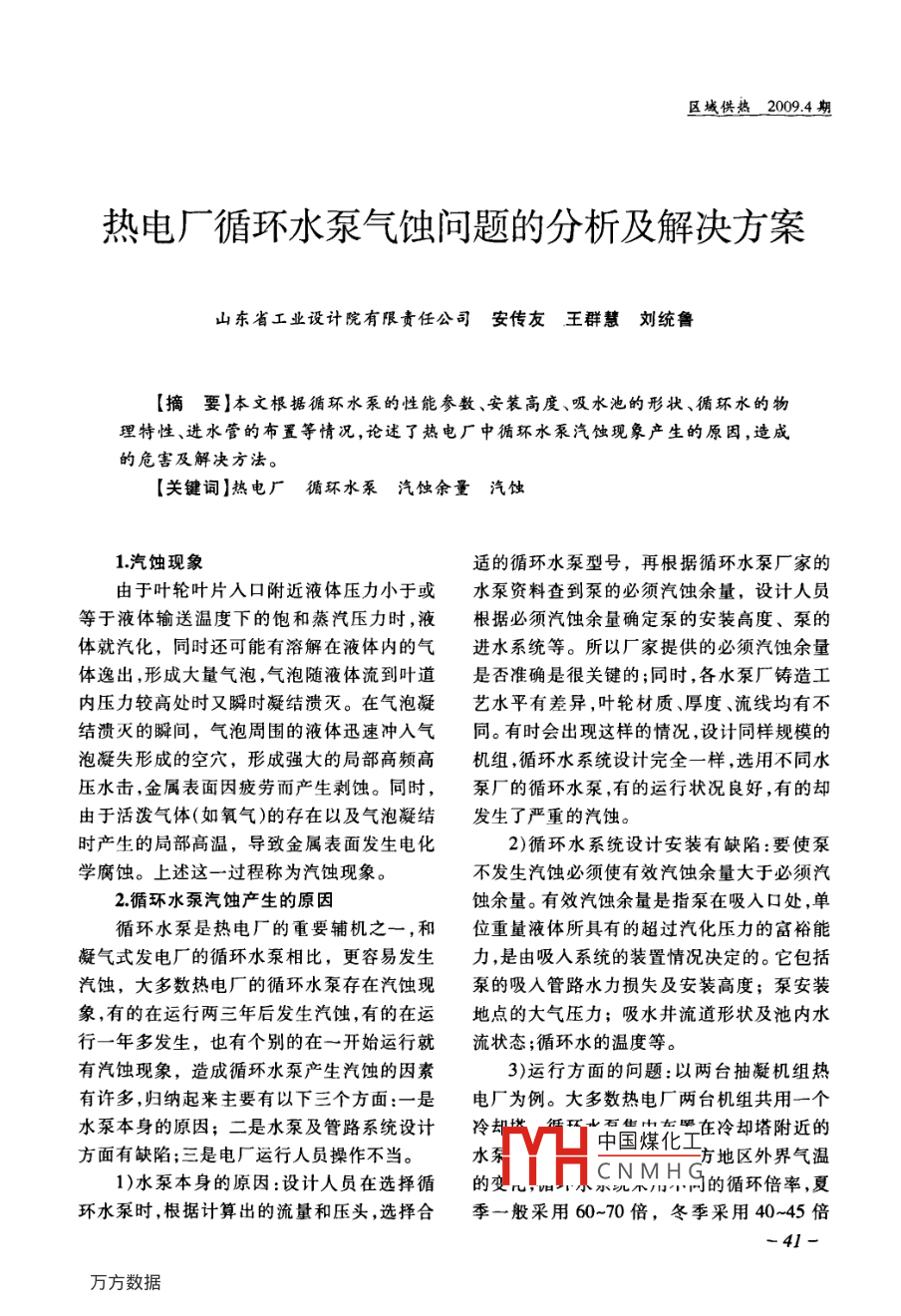 熱電廠循環(huán)水泵氣蝕問題的分析及解決方案