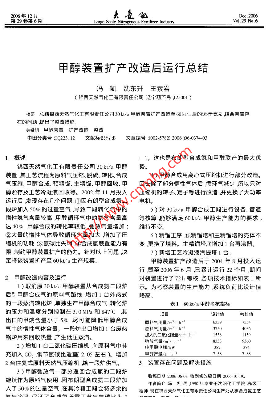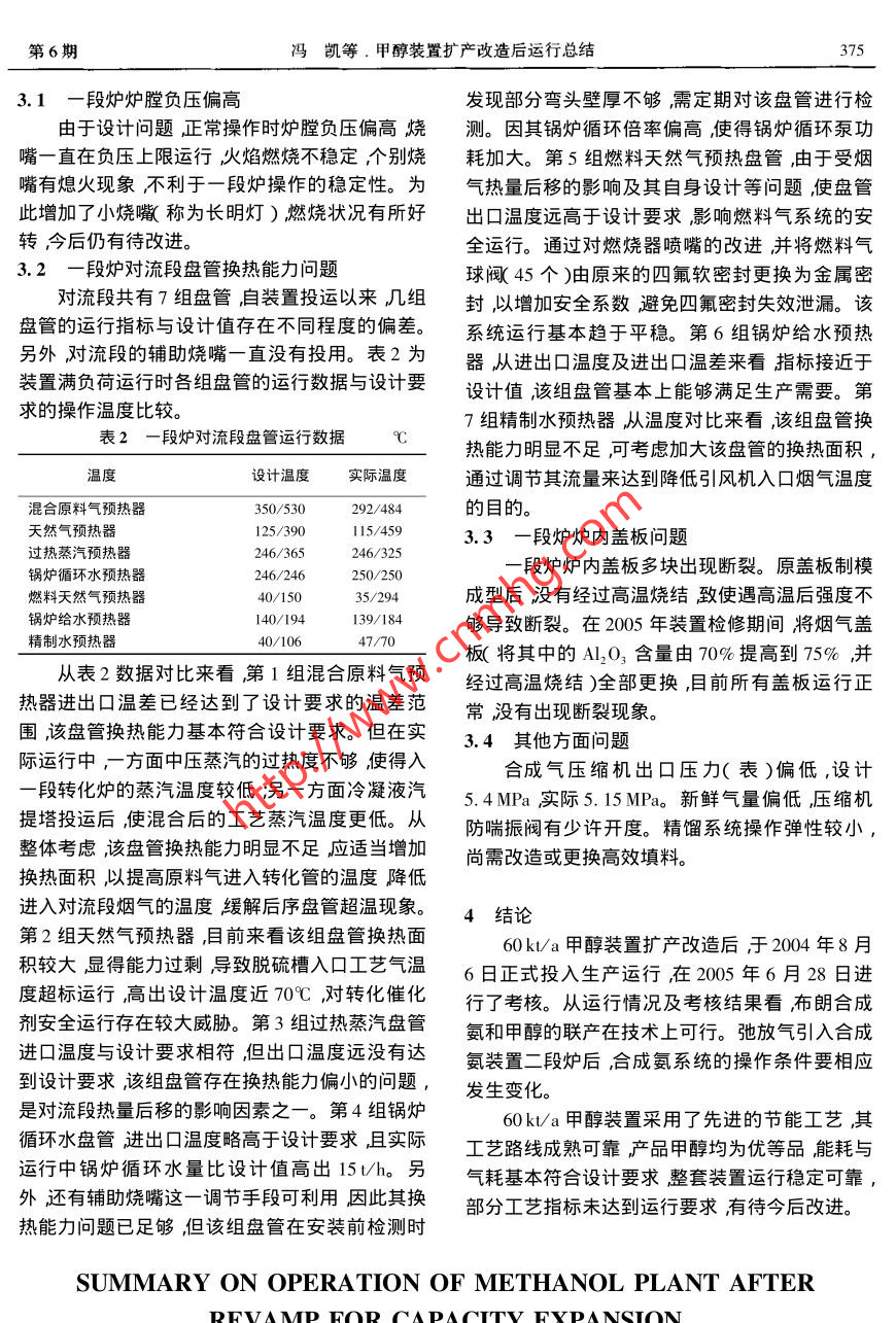 甲醇裝置擴(kuò)產(chǎn)改造后運(yùn)行總結(jié)