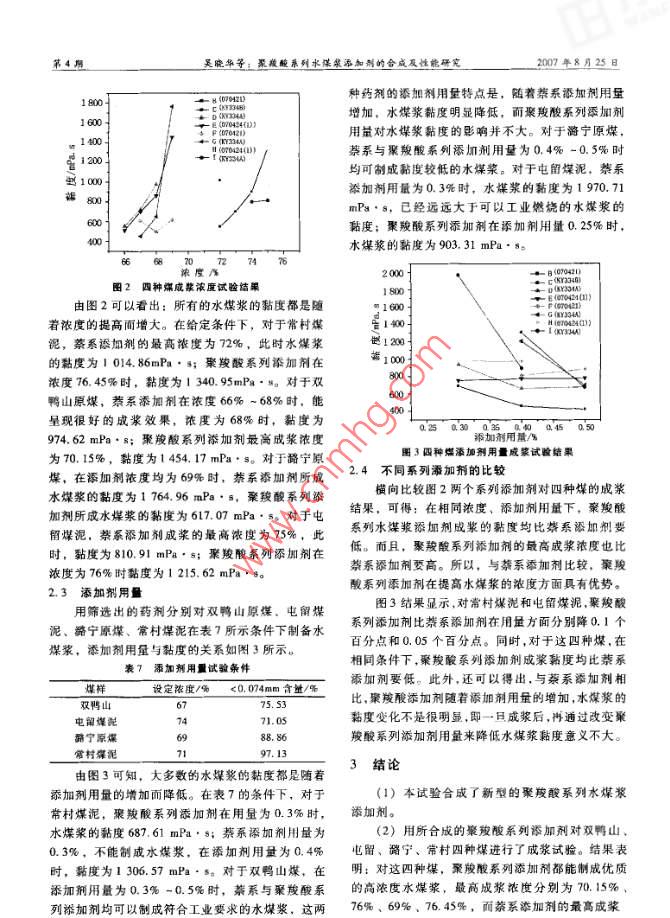 聚羧酸系列水煤漿添加劑的合成及性能研究