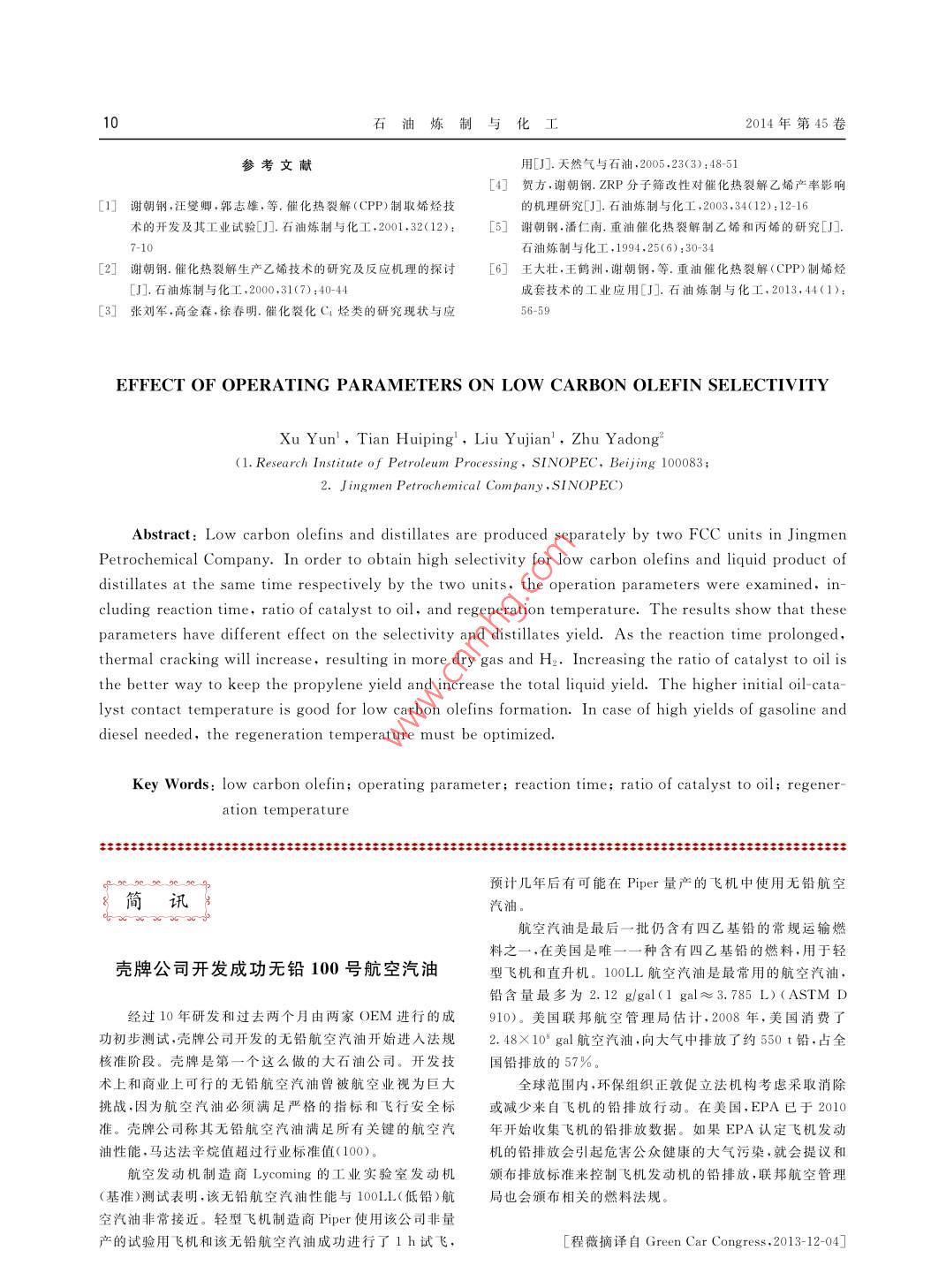 - 期刊名字:石油煉制與化工