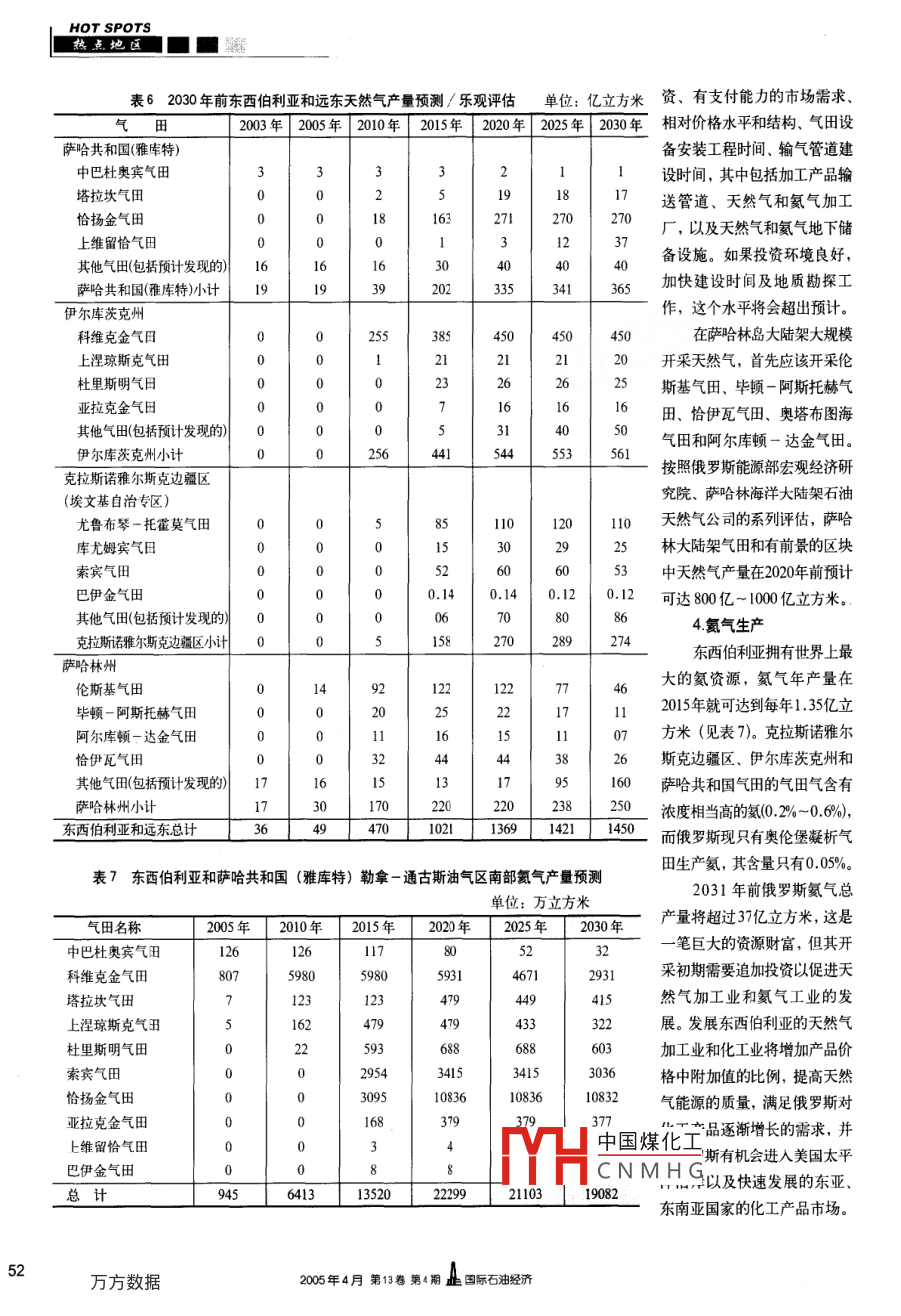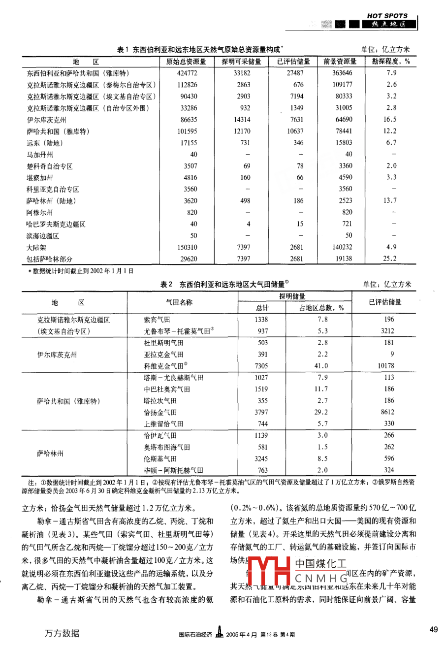 我點(diǎn)地區(qū)■■俄羅斯東部天然氣資源及天然氣管網(wǎng)規(guī)劃武冠軍張延萍編譯俄羅斯國立石油與天然氣大學(xué))(中國石油管道公司)摘要發(fā)展東西伯利亞和俄遠(yuǎn)東地區(qū)的油氣工業(yè)是俄羅斯2020年前能源戰(zhàn)略的重要組成部分。該地區(qū)天然氣資源豐富,且劫探程度相對(duì)不高。預(yù)計(jì)到2030年俄羅斯東部總的夭然氣儲(chǔ)量增長量將不少于12萬億立方米,其中,在東西伯利亞和薩哈共和國(西伯利亞地臺(tái))增長8萬億立方米,遠(yuǎn)東增長4萬億立方米。從東西伯利亞薩哈共和國、薩哈林島大陸架以管道和液化天然氣形式向亞太地區(qū)和美國太平洋沿岸出口的夭然氣在2020-2025年前可能達(dá)到800億一900億立方米/年,樂觀估計(jì)將達(dá)到1100億~1200億立方米/年。此外,東西伯利亞還將成為世界最大的氦氣生產(chǎn)地和出口地。餓21世紀(jì)的這一超大型建設(shè)碩目,需要巨大的投贇。俄羅斯科學(xué)院油氣地質(zhì)研究院的專家系統(tǒng)分析了俄東部天然氣岀口的多種方案,提岀了餓東部天然氣管網(wǎng)分三階段建設(shè)的實(shí)施方案關(guān)鍵詞俄羅斯東西伯利亞天然氣管道建設(shè)資源狀況勘探開發(fā)東西伯利亞陸地天然氣原始總資源量平均拗探程度為、俄羅斯東部天然氣資源情況及開釆現(xiàn)狀7.8%,遠(yuǎn)東地區(qū)為6.71%,海洋大陸架(拉普捷夫海、東西伯利亞海、楚科奇海、白令海、鄂霍茨克海、日本海)以俄羅斯東西伯利亞和遠(yuǎn)東地區(qū)的天然氣儲(chǔ)量主要集中在及太平洋東堪察加部分平均為4.92%。盡管勘探程度較低克拉斯諾雅爾斯克邊疆區(qū)(包括專區(qū))、薩哈共和國(雅庫但區(qū)域內(nèi)已經(jīng)發(fā)現(xiàn)了系列超大規(guī)模的天然氣田:埃文基自治特)、伊爾庫茨克州和薩哈林州。這些區(qū)域已證實(shí)儲(chǔ)量只占遠(yuǎn)專區(qū)的尤魯布琴一托霍莫油氣集中帶(尤魯布琴一托霍莫?dú)鈻|地區(qū)原始可采資源量的小部分,發(fā)現(xiàn)新的大天然氣田的可田和庫尤姆賓氣田)及索賓氣田;伊爾庫茨克州的科維克金能性非常高。北薩哈林含油氣區(qū)是鄂霍茨克海域資源和探明氣田和上浧瓊斯克氣田;薩哈共和國(雅庫特)的塔拉坎氣可采儲(chǔ)量最多的地區(qū),現(xiàn)有油氣田64個(gè)。北薩哈林邊界地帶田和恰揚(yáng)金氣田;薩哈林島大陸架的畢頓一阿斯托赫氣田發(fā)現(xiàn)了大批可工業(yè)開發(fā)的油氣資源(包括其大陸架和西堪察奧塔布圖海氣田、恰伊瓦氣田和倫斯基氣田(見表2)。加),大陸架區(qū)探明并經(jīng)評(píng)估的油氣儲(chǔ)量主要集中在幾個(gè)特根據(jù)薩哈林海洋石油公司科研設(shè)計(jì)院的研究,在遠(yuǎn)東海大型的氣田中。域做進(jìn)一步地質(zhì)勘探工作的基礎(chǔ)上還可以發(fā)現(xiàn)250多個(gè)油氣1.資源基礎(chǔ)群,可采儲(chǔ)量總計(jì)超過100億噸油氣當(dāng)量,當(dāng)然,這需要相在東西伯利亞和遠(yuǎn)東陸地和水域進(jìn)行的地質(zhì)勘探工作相當(dāng)數(shù)額的投資。目前,已發(fā)現(xiàn)油氣田的勘探和預(yù)開發(fā)工作的對(duì)較少,尋找油氣礦產(chǎn)還處于初期階段,可信度等級(jí)高的天投資就已達(dá)到250億美元左右。近年來在已發(fā)現(xiàn)油氣田(科然氣儲(chǔ)量在原始總資源量結(jié)構(gòu)中比例不大(見表1)維克金氣田、尤魯布琴一托霍莫?dú)馓锏?的補(bǔ)充勘探中增加根據(jù)俄羅斯科學(xué)院石油天然氣地質(zhì)研究院的評(píng)估,東西了相當(dāng)多的儲(chǔ)量。根據(jù)2003年出版的資料,經(jīng)過補(bǔ)充勘探,伯利亞及遠(yuǎn)東陸地和水域油氣原始可采資源量大約為850科維中國煤化工13萬5億立方米據(jù)俄羅億~900億噸油當(dāng)量,其中:石油200億~220億噸,伴生氣斯科CNMHG5,科維克金地區(qū)和其毗1.5萬億~2萬億立方米,氣田氣58萬億~61萬億立方米,鄰量不少于3萬億立方凝析油30億~50億噸米;尤魯布琴一托霍莫區(qū)域天然氣儲(chǔ)量約1.5萬億~2萬億2005年4月第13卷第4期正國際石油經(jīng)濟(jì)HOT SPOTS表1東西伯利亞和遠(yuǎn)東地區(qū)天然氣原始總資源量構(gòu)成單位:億立方米原始總資源量「探明可采儲(chǔ)量已評(píng)估儲(chǔ)量前景資源量勘探程度,%東西伯利亞和薩哈共和國(雅庫特)3318227487克拉斯諾雅爾斯克邊疆區(qū)(秦梅爾自治專區(qū))126286367610172.6克拉斯諾雅爾斯克邊疆區(qū)(埃文基自治專區(qū))7194克拉斯諾雅爾斯克邊疆區(qū)(自治專區(qū)外圍)伊爾庫茨克州薩哈共和國(雅庫特)1015121707844112.2東(陸地)1715馬加丹州楚科奇自治專區(qū)35078堪察加州481645903.3科里亞克自治專區(qū)薩哈林州(陸地)3620阿穆爾州哈巳羅夫斯克邊疆區(qū)濱海邊疆區(qū)大陸架1503107397包括薩哈林部分*數(shù)據(jù)統(tǒng)計(jì)時(shí)間截止到2002年1月1日表2東西伯利亞和遠(yuǎn)東地區(qū)大氣田儲(chǔ)量°單位:億立方米探明儲(chǔ)量地區(qū)氣田名稱已評(píng)估儲(chǔ)量總計(jì)占地區(qū)總數(shù),%克拉斯諾雅爾斯克邊疆區(qū)索賓氣田7.8(埃文基自治專區(qū))尤魯布琴一托霍莫?dú)馓锒爬锼姑鳉馓?032.8伊爾庫茨克州亞拉克金氣田科維克金氣田41.0塔斯一尤良赫斯氣田1027中巴杜奧賓氣田薩哈共和國(雅庫特)塔拉坎氣田恰揚(yáng)金氣田3797上維留恰氣田恰伊瓦氣田1139奧塔布圖海氣田薩哈