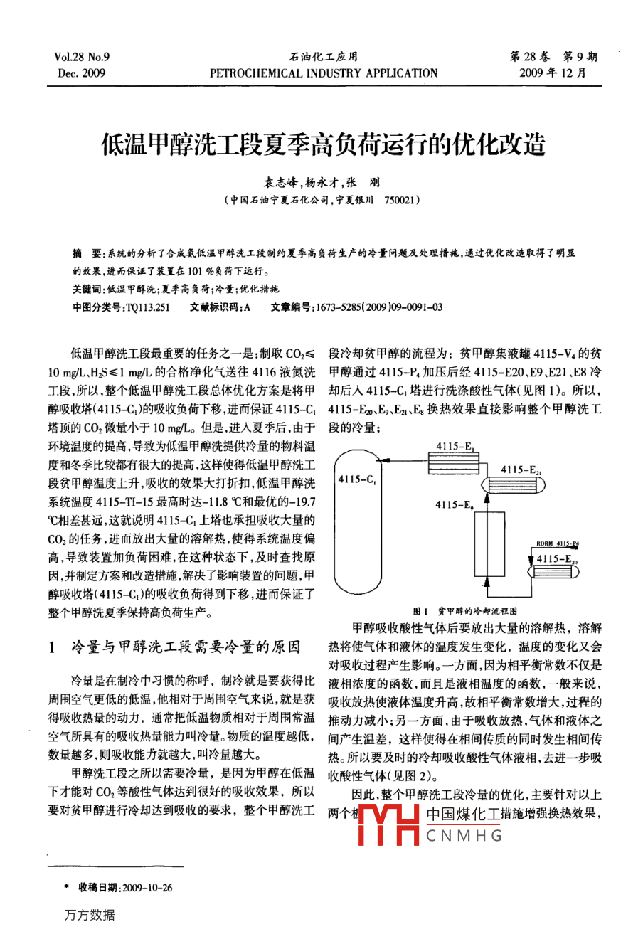 低溫甲醇洗工段夏季高負(fù)荷運(yùn)行的優(yōu)化改造