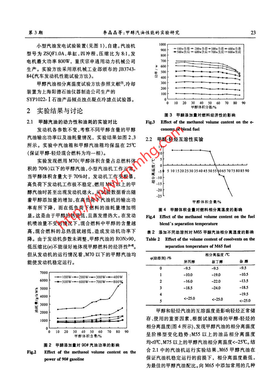 甲醇汽油性能的實(shí)驗(yàn)研究