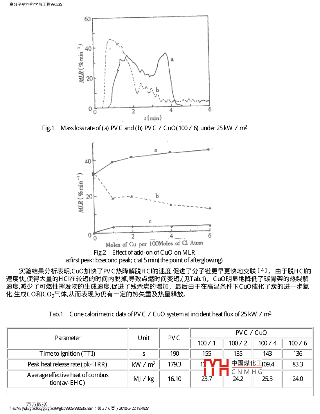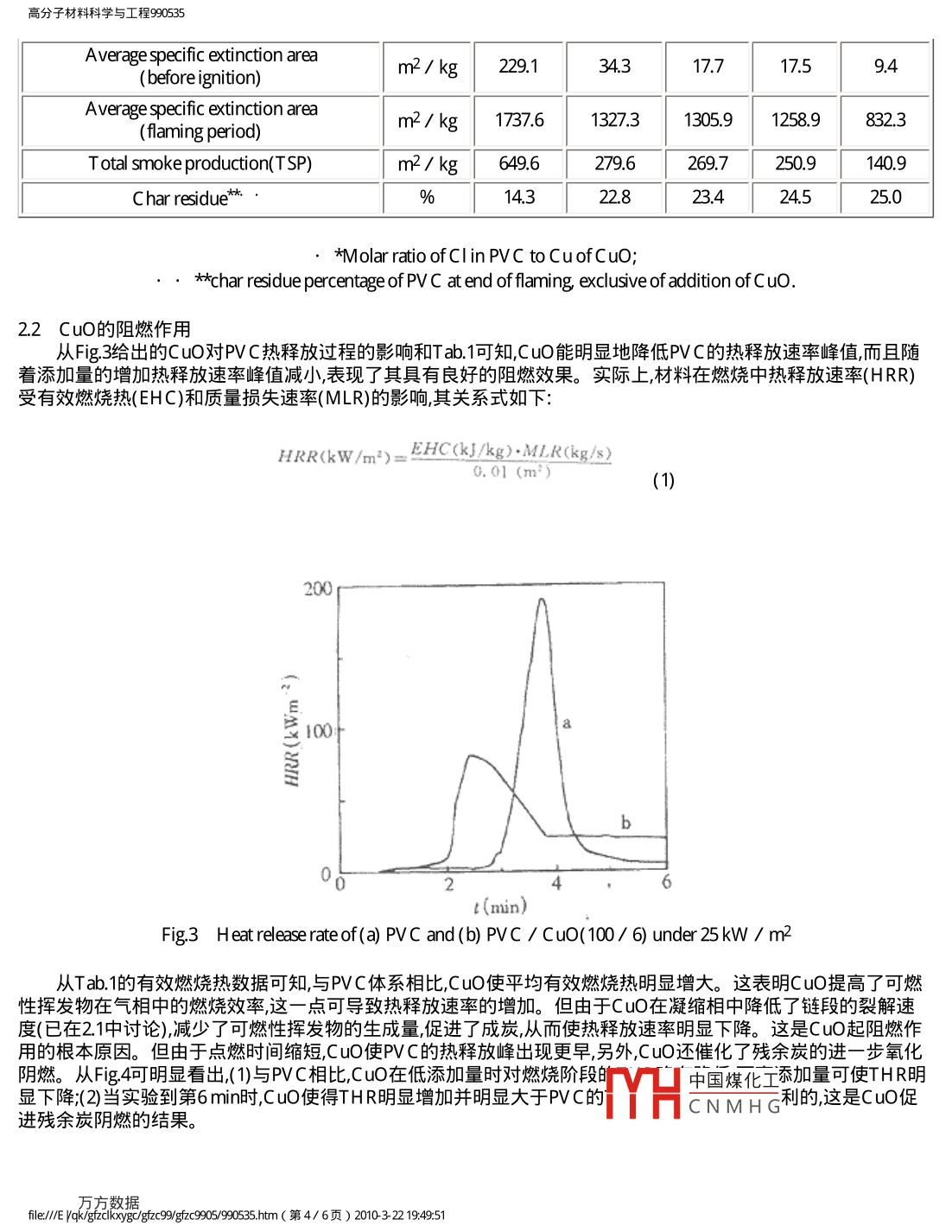CuO對硬質(zhì)PVC熱解、阻燃和抑煙的錐形量熱儀(CONE)研究 CuO對硬質(zhì)PVC熱解、阻燃和抑煙的錐形量熱儀(CONE)研究