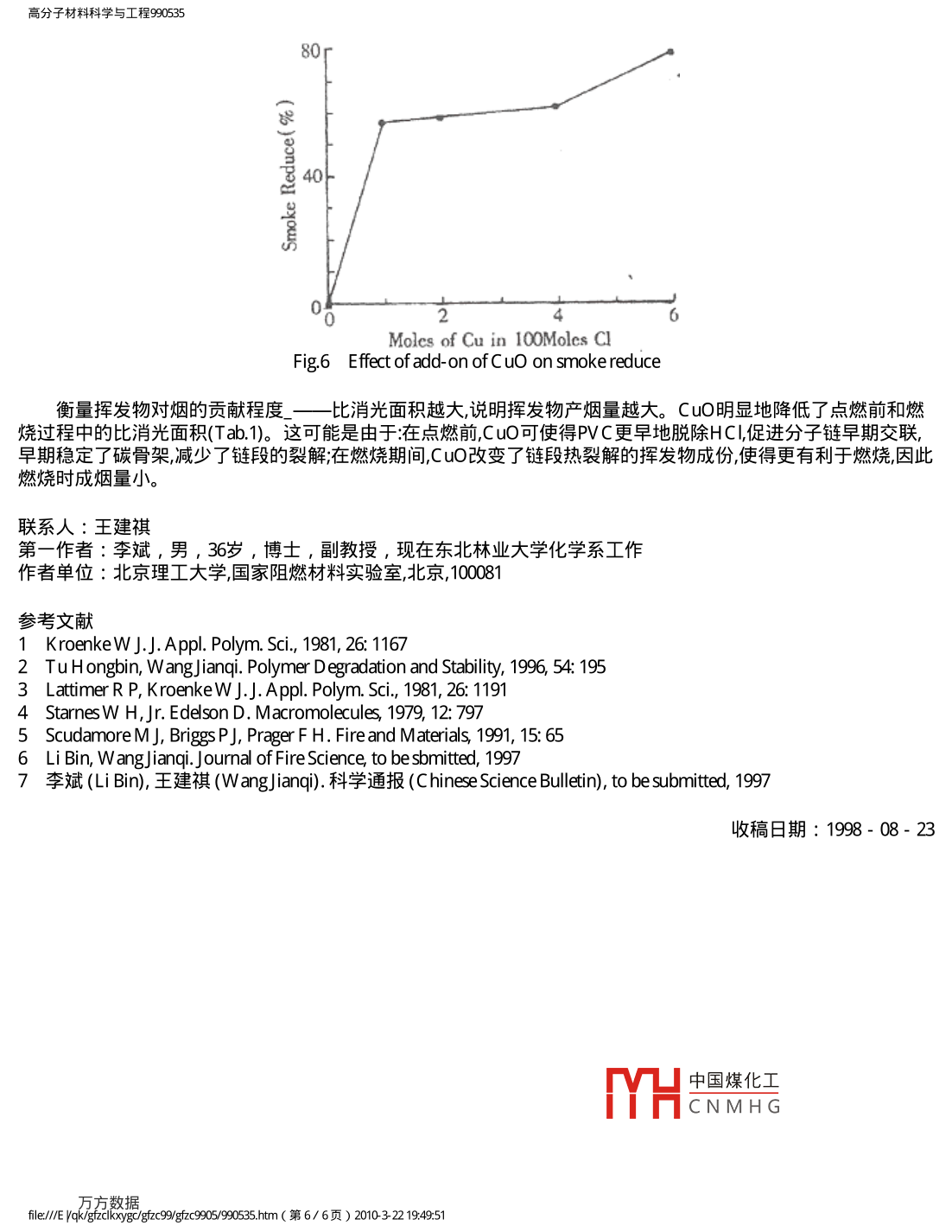 CuO對硬質(zhì)PVC熱解、阻燃和抑煙的錐形量熱儀(CONE)研究