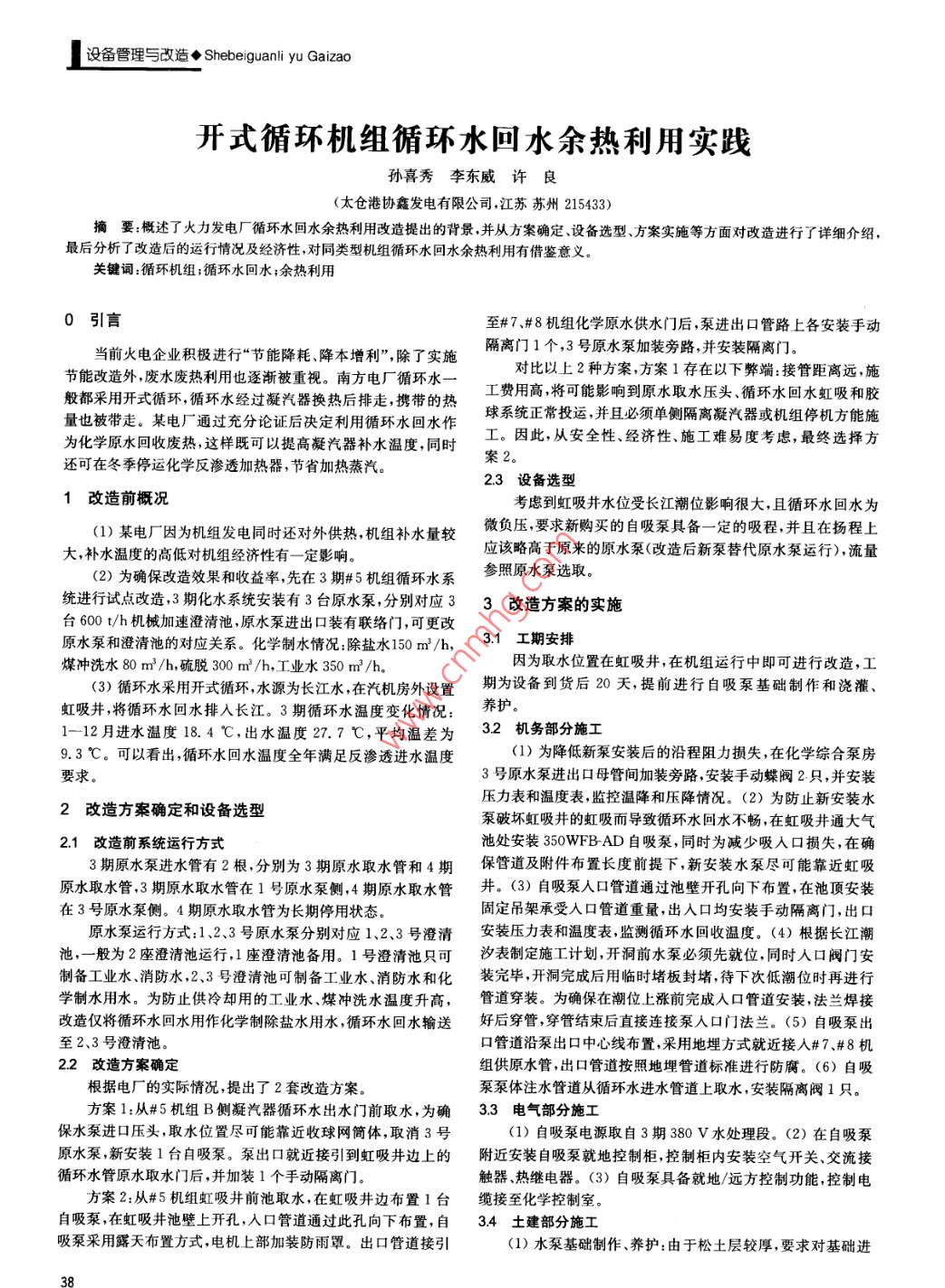 開式循環(huán)機組循環(huán)水回水余熱利用實踐