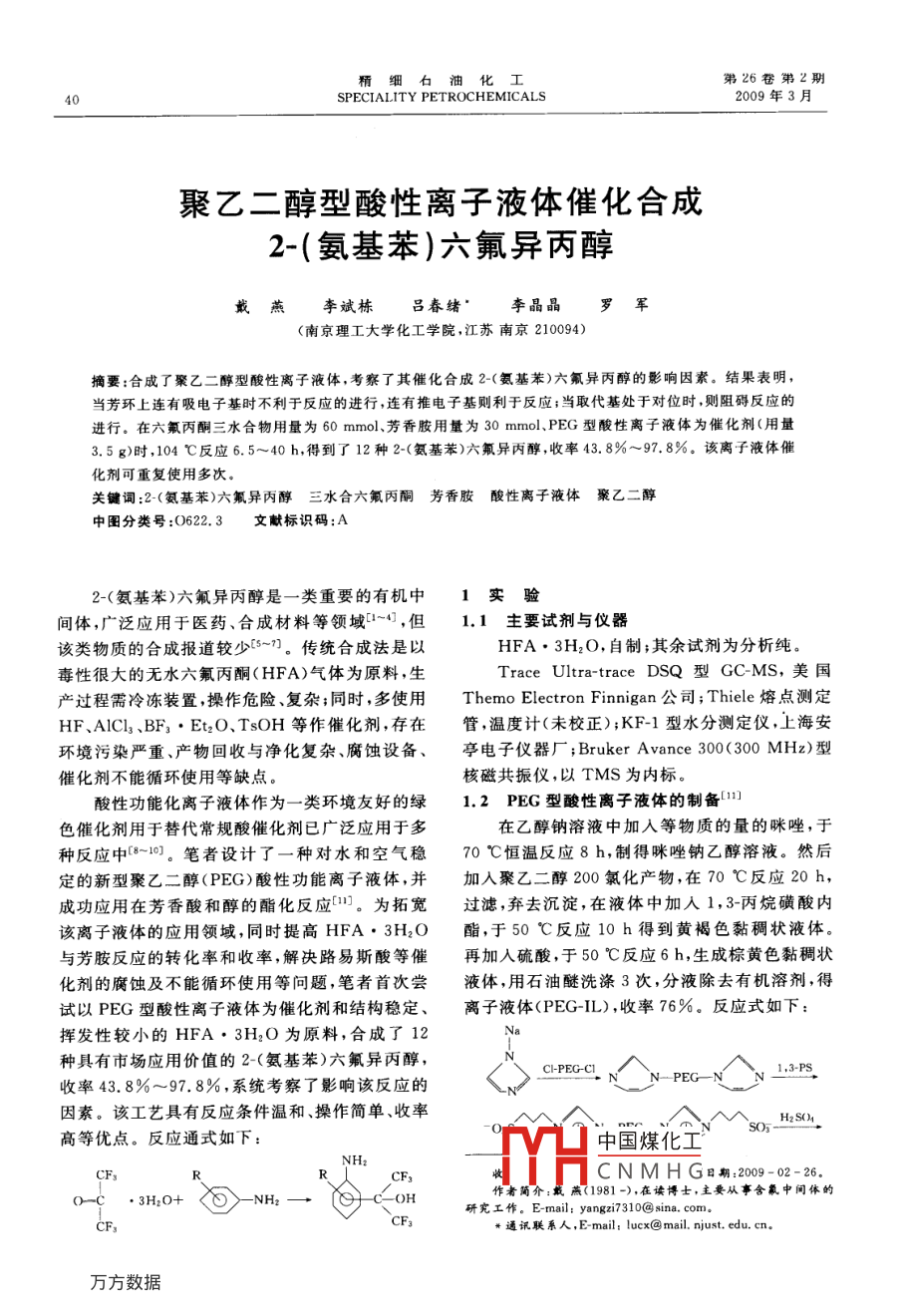 聚乙二醇型酸性離子液體催化合成2-(氨基苯)六氟異丙醇