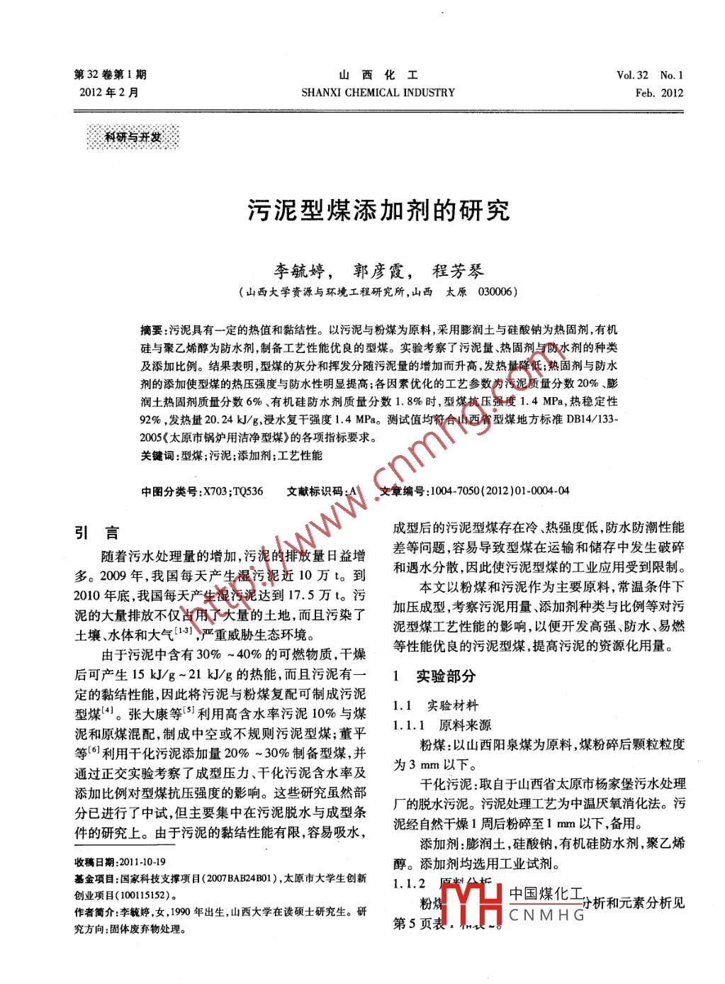 污泥型煤添加劑的研究