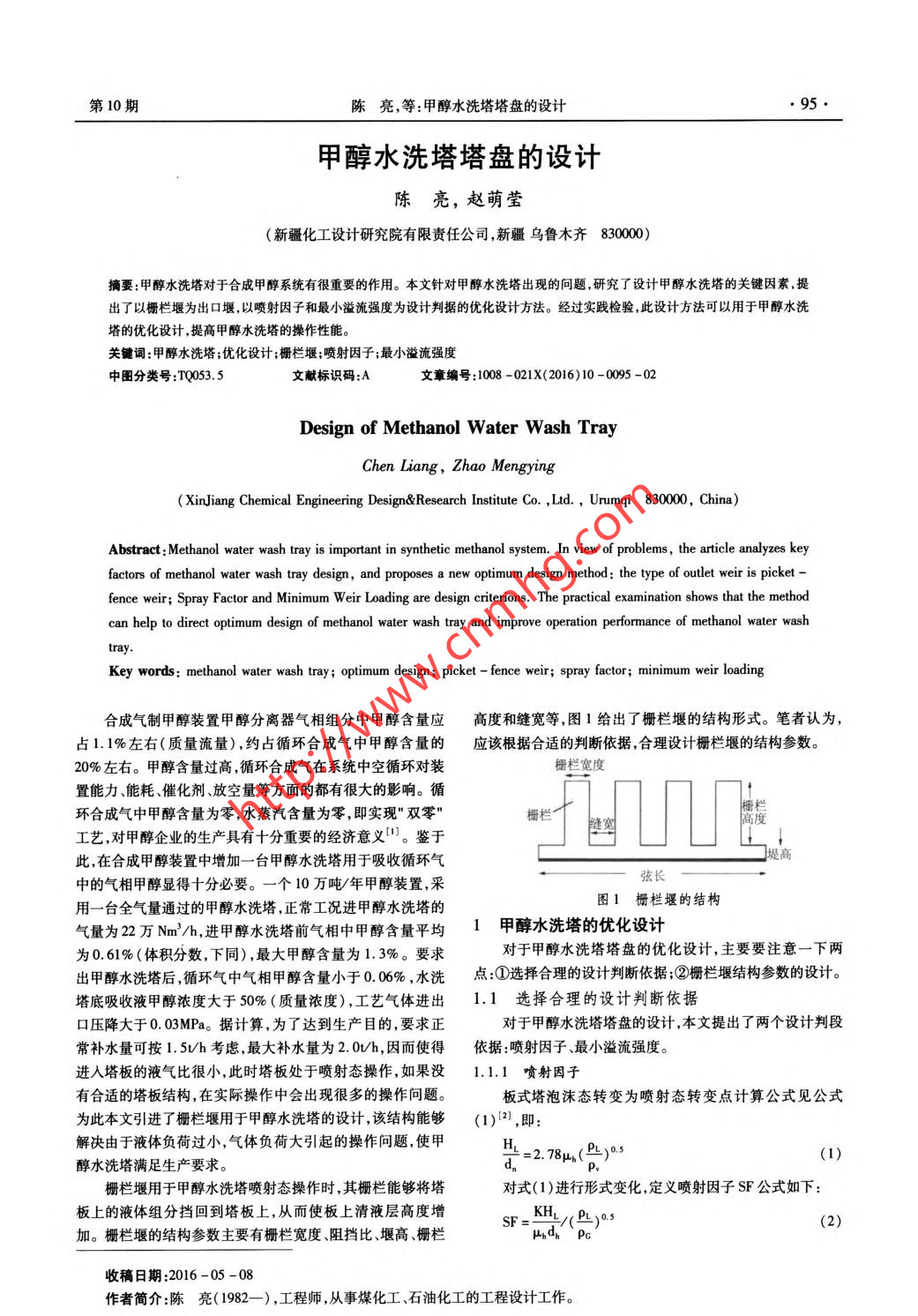 甲醇水洗塔塔盤的設(shè)計