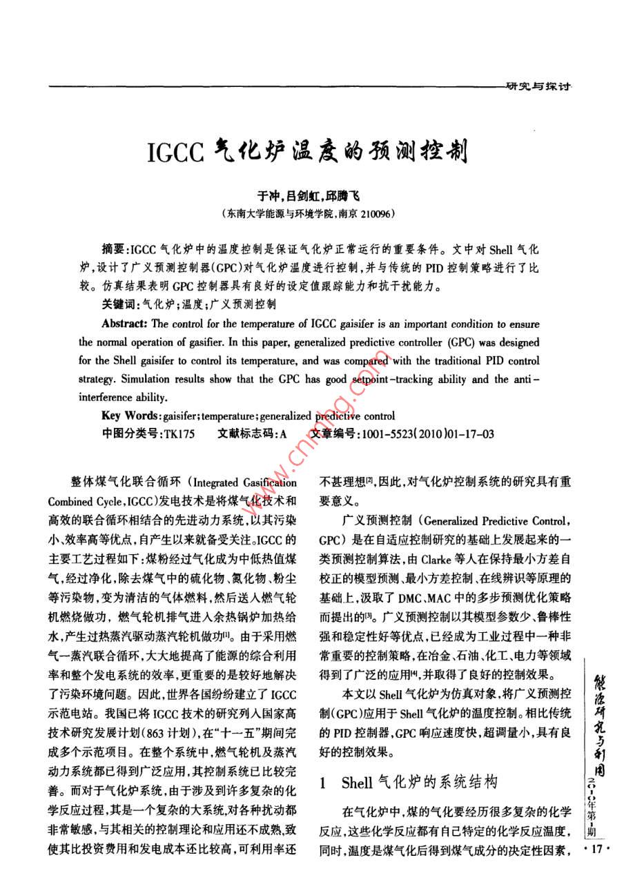 IGCC氣化爐溫度的預(yù)測(cè)控制
