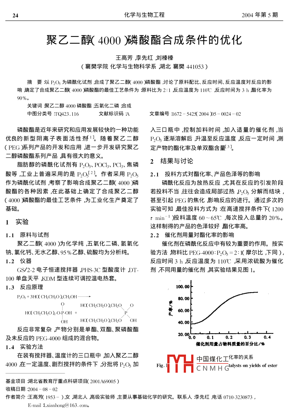 聚乙二醇(4000)磷酸酯合成條件的優(yōu)化