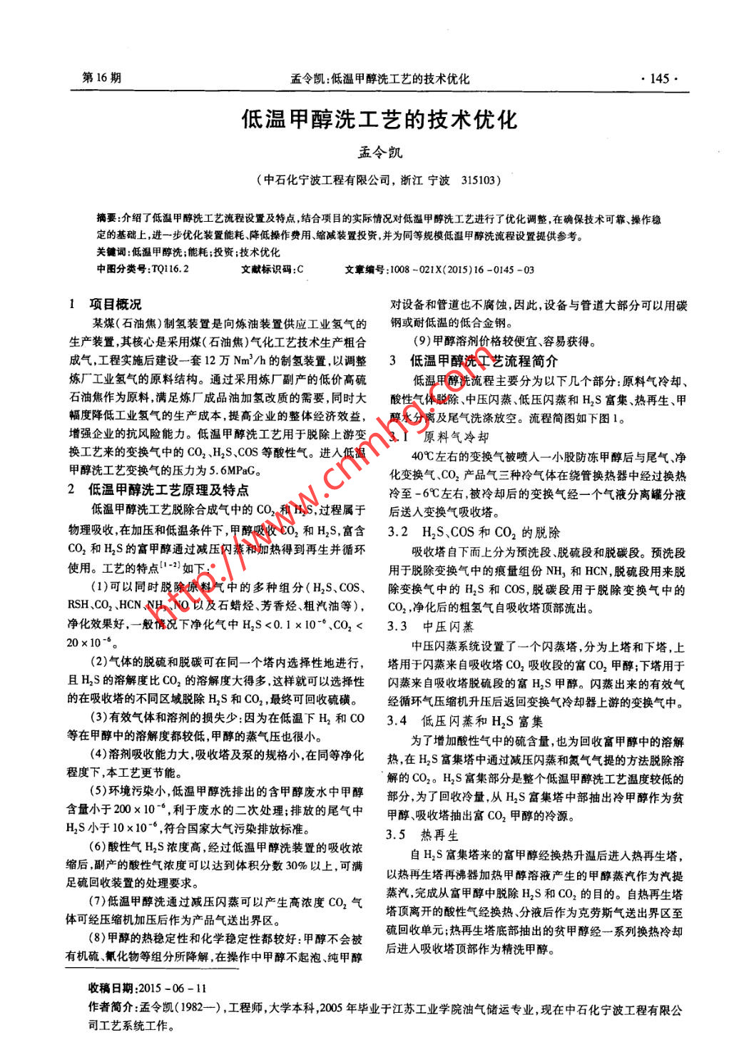 低溫甲醇洗工藝的技術優(yōu)化
