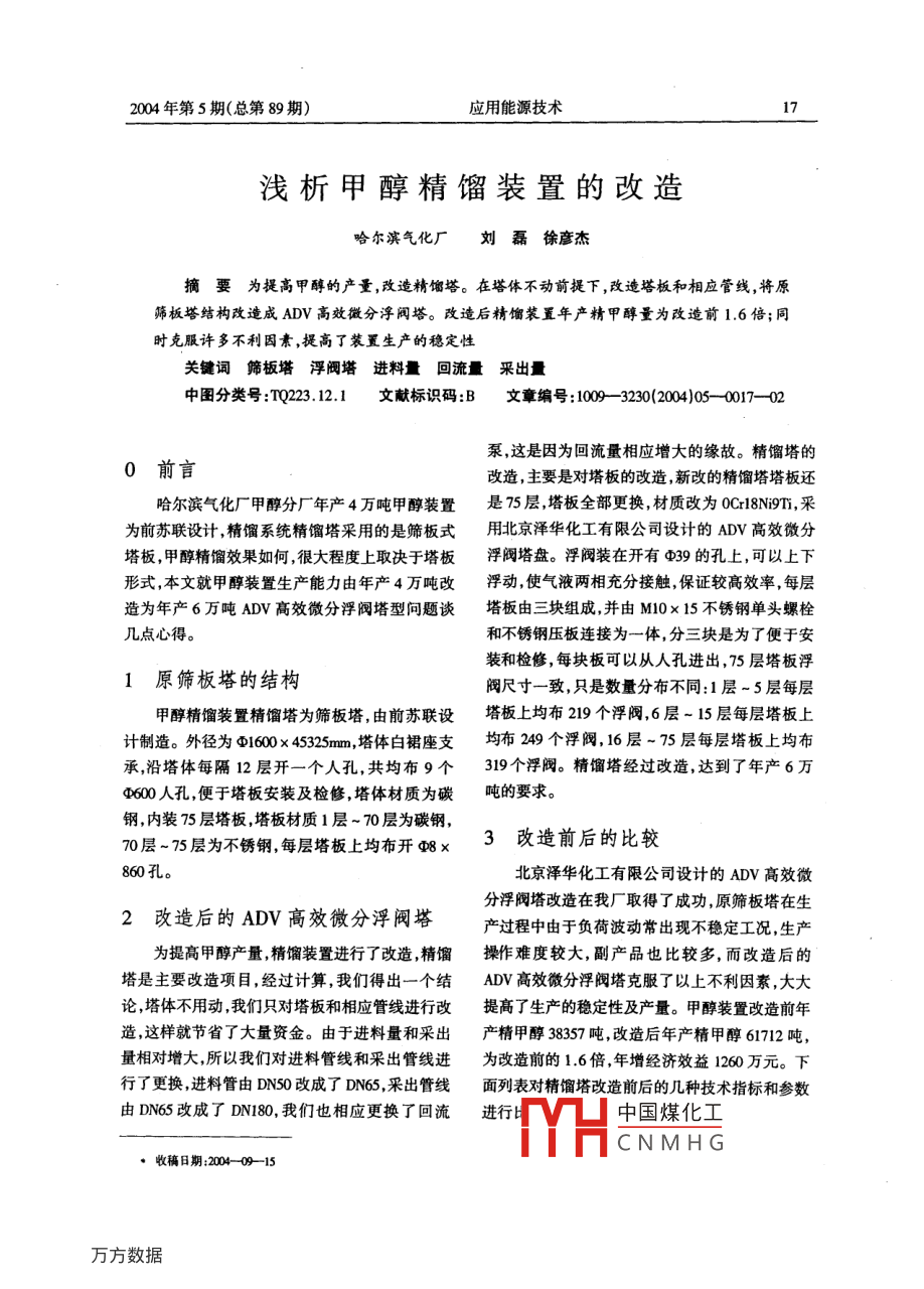 淺析甲醇精餾裝置的改造