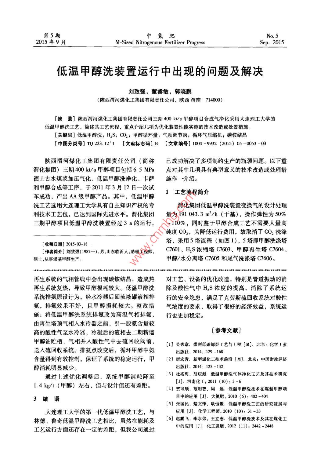 低溫甲醇洗裝置運(yùn)行中出現(xiàn)的問題及解決