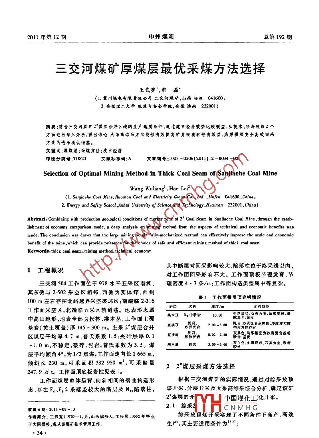 - 期刊名字:中州煤炭