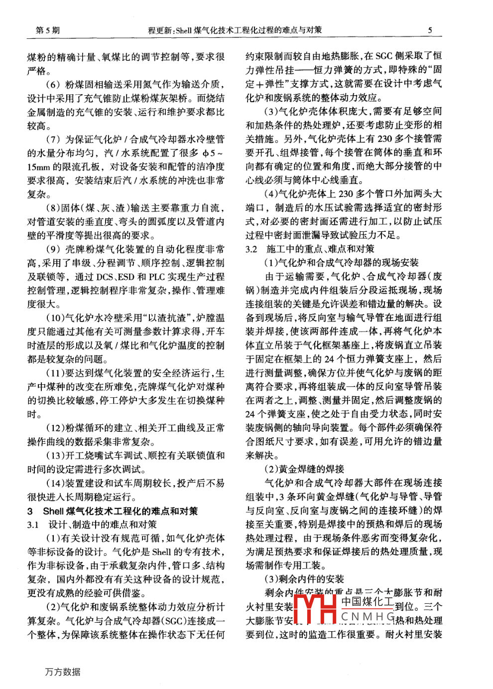 Shell煤氣化技術(shù)工程化過程的難點(diǎn)與對策