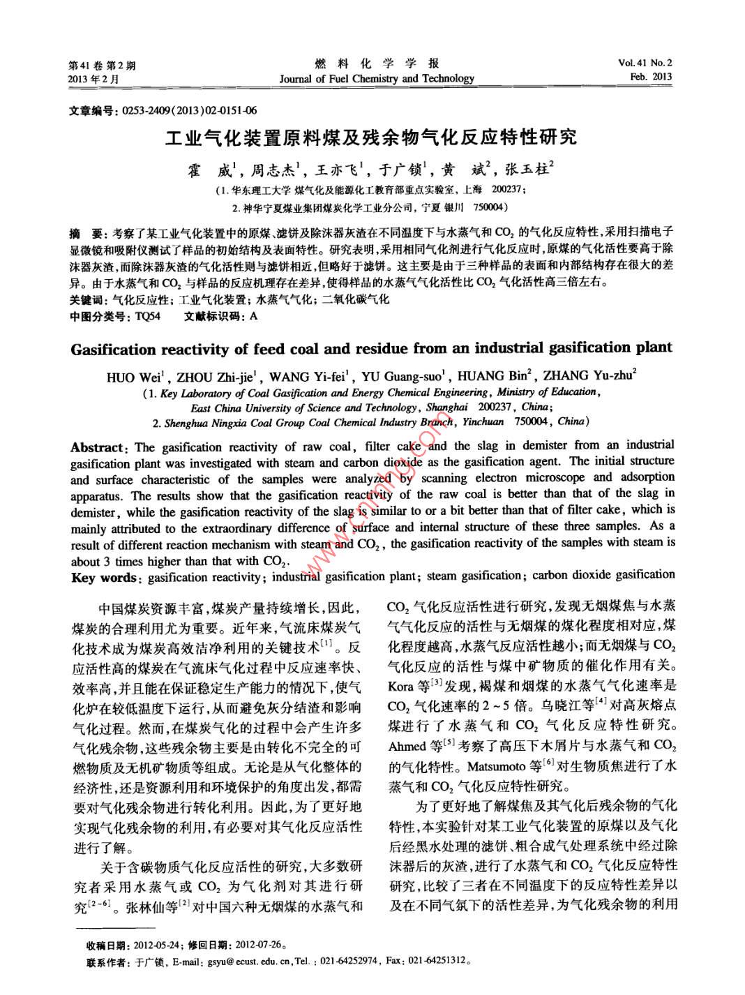 - 作者單位:華東理工大學(xué)煤氣化及能源化工教育部重點實驗室,神華寧夏煤業(yè)集團(tuán)煤炭化學(xué)工業(yè)分公司