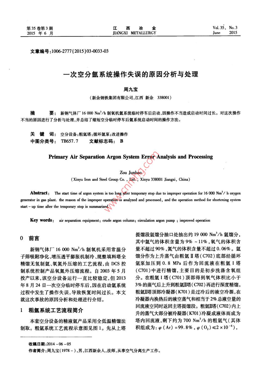- 期刊名字:江西冶金