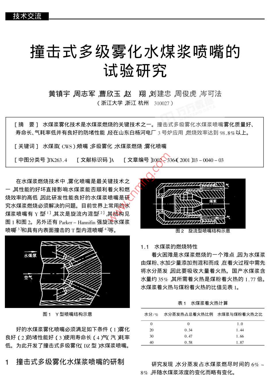 撞擊式多級霧化水煤漿噴嘴的試驗(yàn)研究