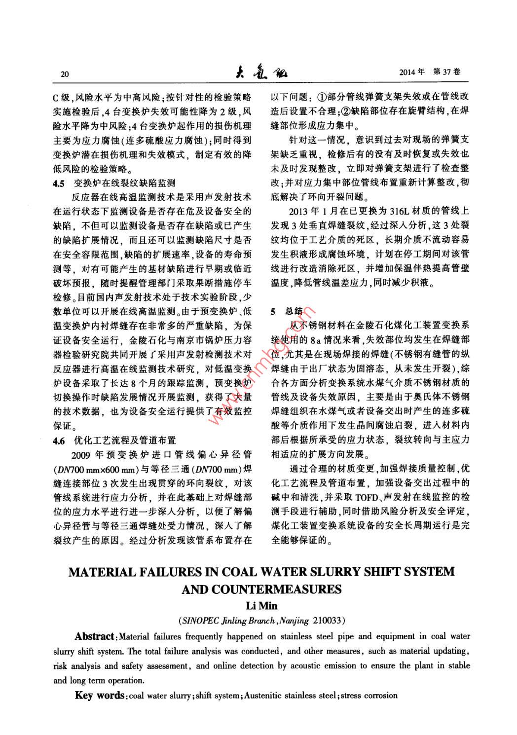 水煤漿變換系統(tǒng)材料失效情況總結(jié)及應(yīng)對措施