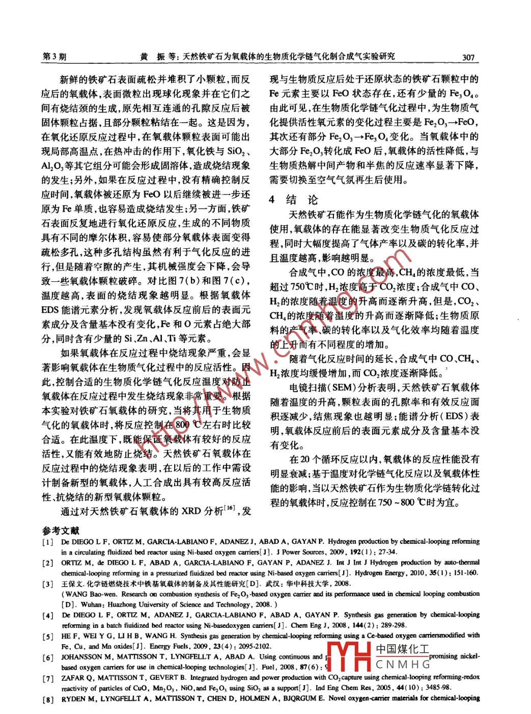 天然鐵礦石為氧載體的生物質(zhì)化學(xué)鏈氣化制合成氣實(shí)驗(yàn)研究
