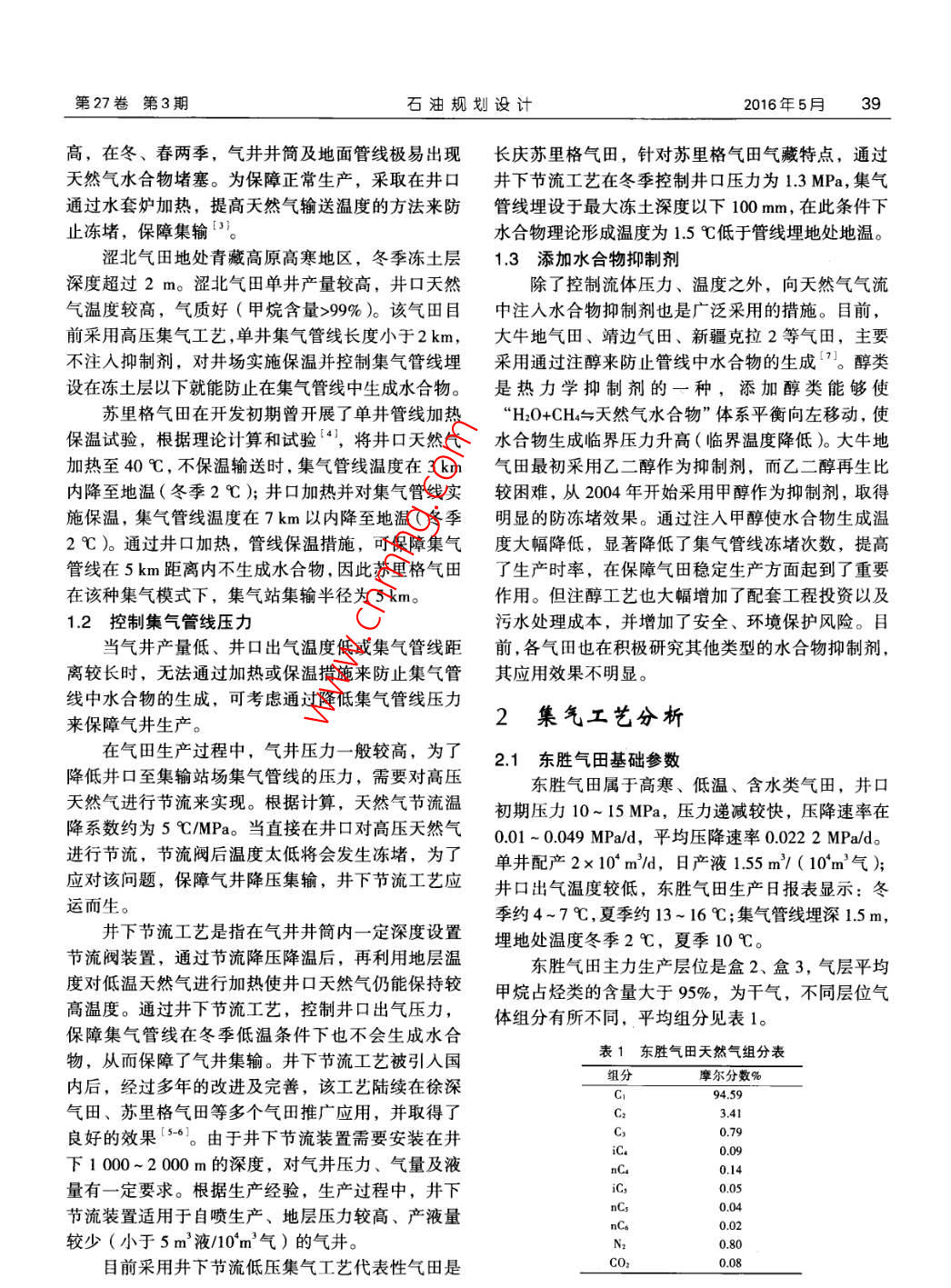 東勝氣田的天然氣集氣工藝研究