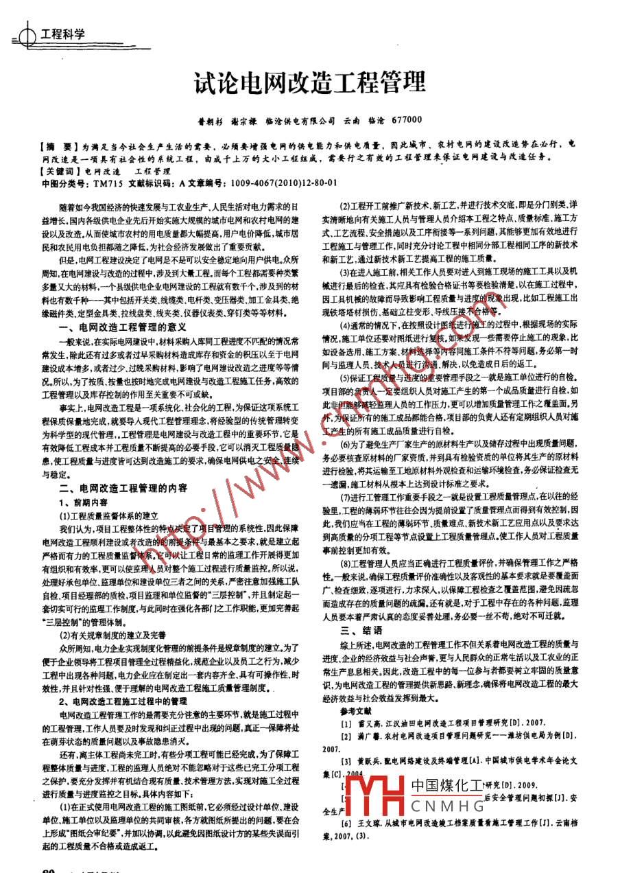 試論電網(wǎng)改造工程管理