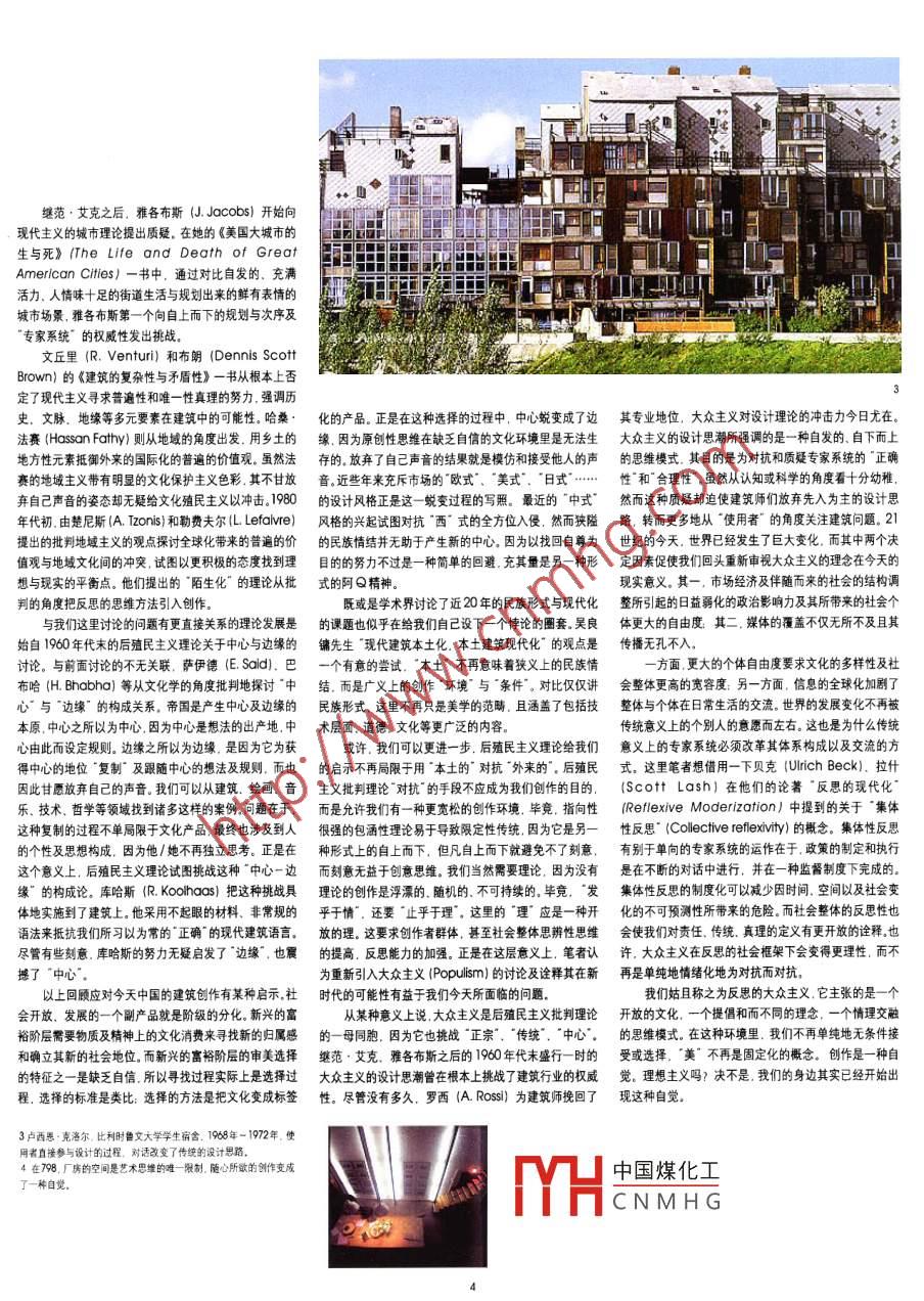 建反思的設(shè)計筑REFLEXIVE DESIGN THINKING論壇李曉東UXioodong摘要:本文從反思的角度探討了關(guān)于設(shè)計思維的問題。這是20世紀(jì)的建筑發(fā)展是一個縱向的歷史脈絡(luò), 不同對于當(dāng)代中國建筑實(shí)踐的反思.討論的重點(diǎn)團(tuán)繞著全球化與的 “主義”。“思潮”隨著技術(shù).材料的發(fā)展.意識形態(tài)地區(qū)主義。反思的設(shè)計意在試圖解決這種沖突和矛盾。全文的變遷. 在將近- -個世紀(jì)的歷史長河里交相輝映。而前從歷史角度回顧了上世紀(jì)后半葉建筑理論的發(fā)展。半葉的發(fā)展與后半葉又有著截然不同的趨勢,甚至在一Abstract: Ihis paper tls about design tikigtroma定程度 上可以說, 20世紀(jì)后50年的建筑理論與創(chuàng)作是reepointorowew. trelectinonthe conemporar在對前 50年建筑發(fā)展的批判與反思的基礎(chǔ)上展開的。archletural, pocte inChina The concem with isuesor/21世紀(jì)伊始.在經(jīng)歷了現(xiàn)代主義,后現(xiàn)代主義.大ololoalanandnangalsmnis the fcuslorisissn.The眾主義. 地域主義.解構(gòu)主...及最近的新現(xiàn)代主義icdea orlle design tinking spppsectoproidean之后. 建筑的舞臺所呈現(xiàn)的是-種多項選擇的并置。在aternative way of mediation to resove contlit and網(wǎng)際網(wǎng)絡(luò)普及的今天, 拼貼成為了一一種時尚和”必然"。contadlition. The disussons is developed throughσ中國. 在經(jīng)歷了數(shù)千年的封閉后.開放的“代價”之一:挑戰(zhàn)現(xiàn)代主義傳統(tǒng)的方法之一是認(rèn)清其關(guān)于“真hstoro evew on the delpent of ctolo teoryn我們所面臨的是一 種全新的文化殖民主義“.不同于以理” 與進(jìn)步的敘述是如何建構(gòu)的:今天的理論家都清楚!archtecture of the second halt of lost century.資源掠奪為目的的殖民主義.文化的殖民主義是雙向地闡明了 創(chuàng)作與創(chuàng)作的環(huán)境及條件的明確關(guān)系。換句話:關(guān)鍵詞:大眾主義.反思的.地域主義,全球化、 設(shè)計思維的. 自發(fā)的.甚至是被殖民者“主動“的選擇。一個曾說. 他/她開始’反思”。 反思在某種意義上說就是不再Key words: Populsm, Retlexive, Regionallsm,經(jīng)自豪的、強(qiáng)勢的同時也是傲慢的自以為是的文化帝復(fù)“同樣”一復(fù)制已有的 “真理” 。Glbalzaion. Design thinking國蛻變成了自卑的,弱勢的.謙恭的文化從屬國。中心第一個開始在建筑上對現(xiàn)代主義建筑理論提出挑戰(zhàn),成了邊緣.對于一個民族意識極強(qiáng)的國度來講.是-種的是荷蘭人范 .艾克(Aldo vaneyck)。范.艾克一無奈。而當(dāng)文化被貼上了標(biāo)簽,百無禁忌地成了消費(fèi)品方 面有選擇地保持建筑的傳統(tǒng).另-方面又有意識地與在市場上販賣,且選擇的標(biāo)準(zhǔn)受價值評判所左右時,無時 尚拉開距離.他的設(shè)計思路的出發(fā)點(diǎn)來自建筑的設(shè)計奈便轉(zhuǎn)換成了墮落。者與使用者之間無條件的平等與協(xié)調(diào)-致。為我們而我們這里所要討論的當(dāng)然不是簡單的價值判斷問建, 由我們而造”(by 'us' forus). 這是他為自己的通,也不是狹隘的民族主義問題. 更不是文化優(yōu)劣論。 作品集寫的題名。對范艾克來講.空間是一種切身體本文旨在探討面臨文化沖突時.建筑師所應(yīng)采取的客驗 .他的每-一個設(shè)計也都是針對一個特定場合而量身觀、理性的設(shè)計思路。我將通過詮釋比較現(xiàn)代主義定做的獨(dú)特的建造次序, 其獨(dú)特性決不是有心做怪。在(Modenism)與后來針對現(xiàn)代主義的批判理論與實(shí)踐他的孤兒院的設(shè)計中 .整個平面的組織團(tuán)繞著社區(qū)的概:的發(fā)展.思古鑒今地提出本文的中心命題反思的設(shè)計。念而展開, 利用街道”.“廣場”及相對獨(dú)立的個體.范.事實(shí)上,當(dāng)我們回顧20世紀(jì)下半葉的建筑理論發(fā)艾克所營造的是由若 干極具歸屬感的社區(qū)組成的獨(dú)立的展.可以看到一個明顯的趨勢.它們不再以第三者的事小” 城”。他所強(qiáng)調(diào)的是鄰里的交往和社區(qū)的和睦。走廊實(shí)作為基點(diǎn)。取而代之的是.理論家們開始挑戰(zhàn)現(xiàn)代主變成了 “街道". 房間變成了“廣場"。 而當(dāng)這種房子1義把人看成抽象的個體的傳統(tǒng)。今天.我們都知道.盡城市間的雙重轉(zhuǎn)換 性被實(shí)施到更小的尺度時,家俱與房管現(xiàn)代主義的理論貌似無懈可擊,卻無疑是造成當(dāng)今世子間的相互性也建立起來了。 范.艾克的設(shè)計正是建立界諸多危機(jī)的理論根源。其建立在所謂發(fā)展基礎(chǔ)上的宏在這種無所不 在的對話過程中.而對話的目的是在整體觀且唯一"真理” 的說法強(qiáng)調(diào)對資源的擴(kuò)張與占有,不的清晰 與局部的隨性中找到- -個清晰的平衡點(diǎn)。僅破壞了文化和生態(tài)的多樣性.也使我們賴以生存的環(huán)境更加脫離自然。的確,我們在柯布西耶(LeCorbusier).密斯(Mies Vander Rohe)等第- -代大師的作品中看到的是一種對具有人類社會普遍性問題的探索.是一種對新空間形式的嘗試。他們試圖解決的問題與具體的環(huán)境及個性化的人無關(guān)。兩次世界大戰(zhàn)給人類社會帶來的災(zāi)難促使人類學(xué)家.社會學(xué)家.心理學(xué)家開始加強(qiáng)對文化、意識形態(tài).個體的“人”的關(guān)注