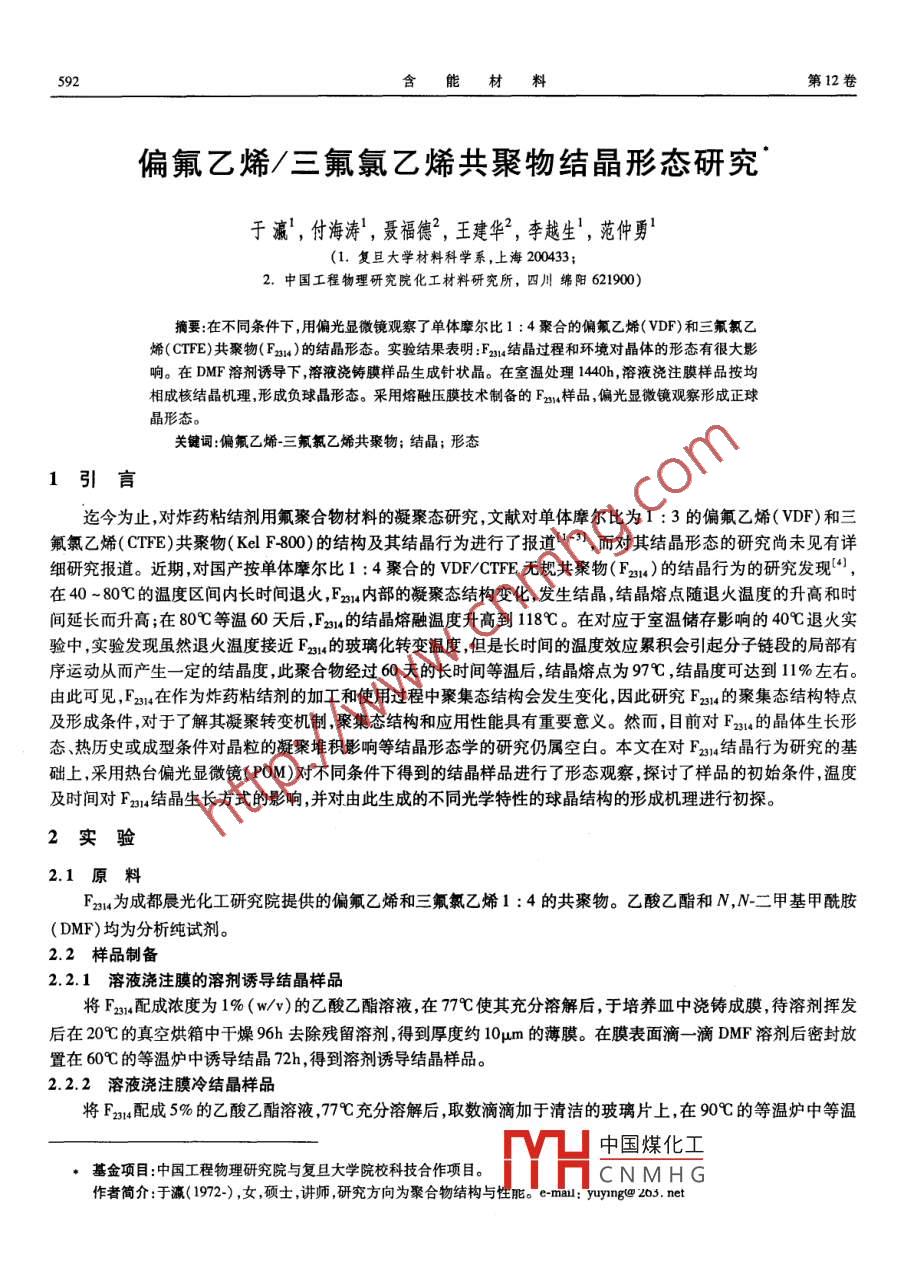 - 作者單位:復(fù)旦大學材料科學系,中國工程物理研究院化工材料研究所