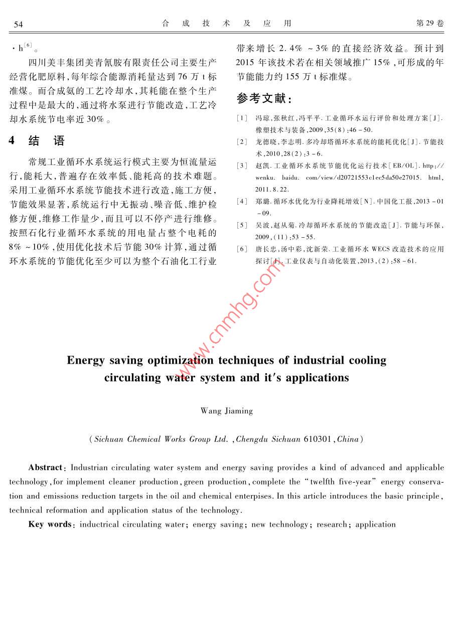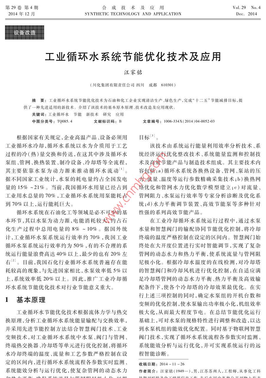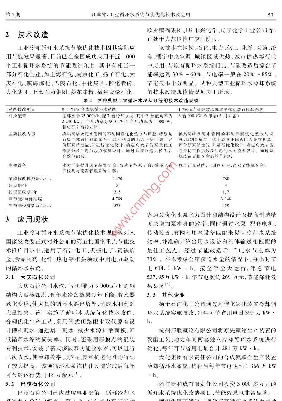 工業(yè)循環(huán)水系統(tǒng)節(jié)能優(yōu)化技術(shù)及應用