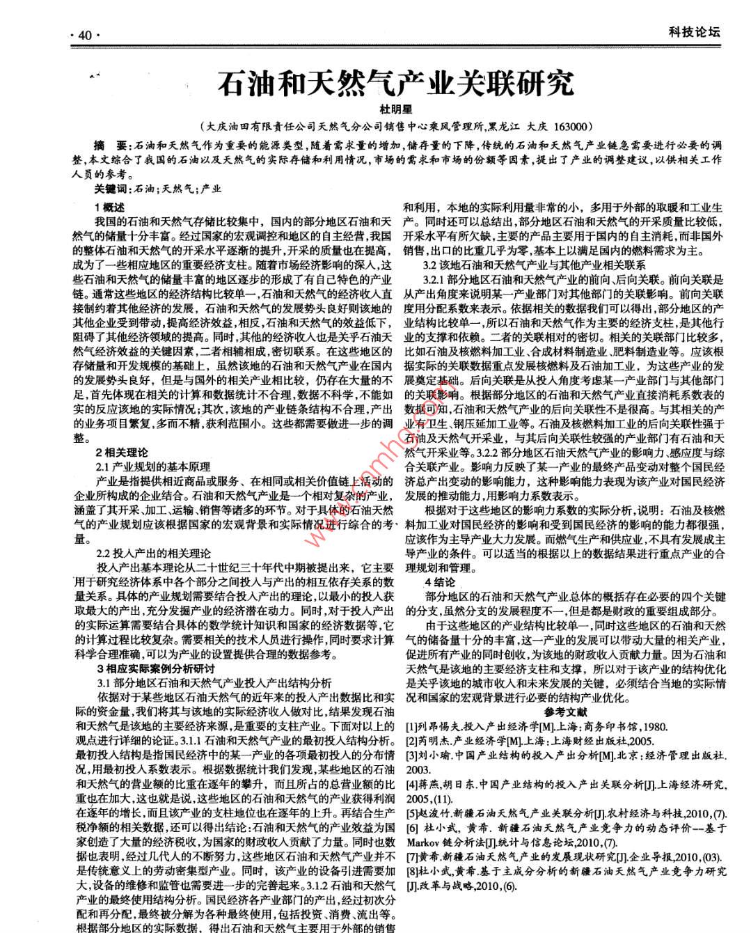 石油和天然氣產(chǎn)業(yè)關(guān)聯(lián)研究