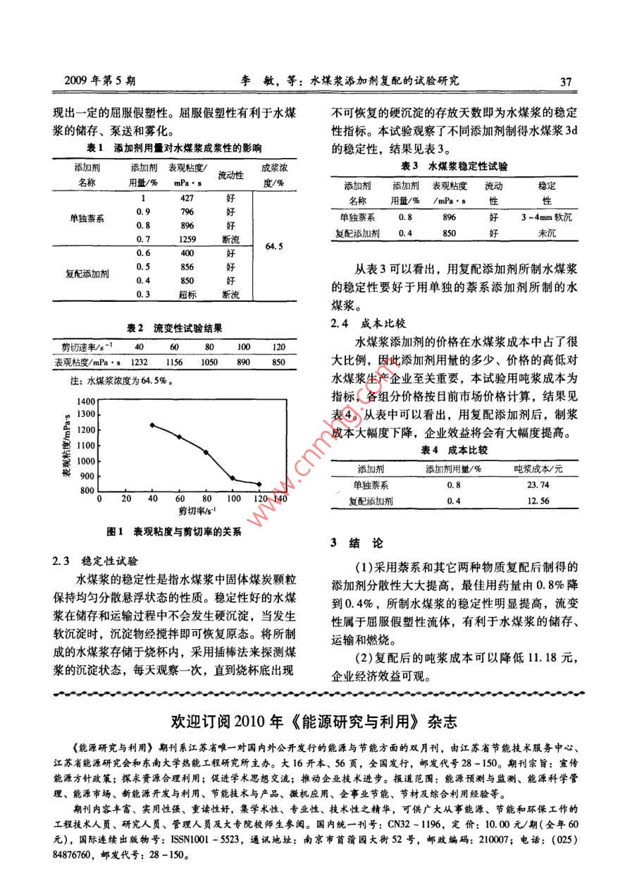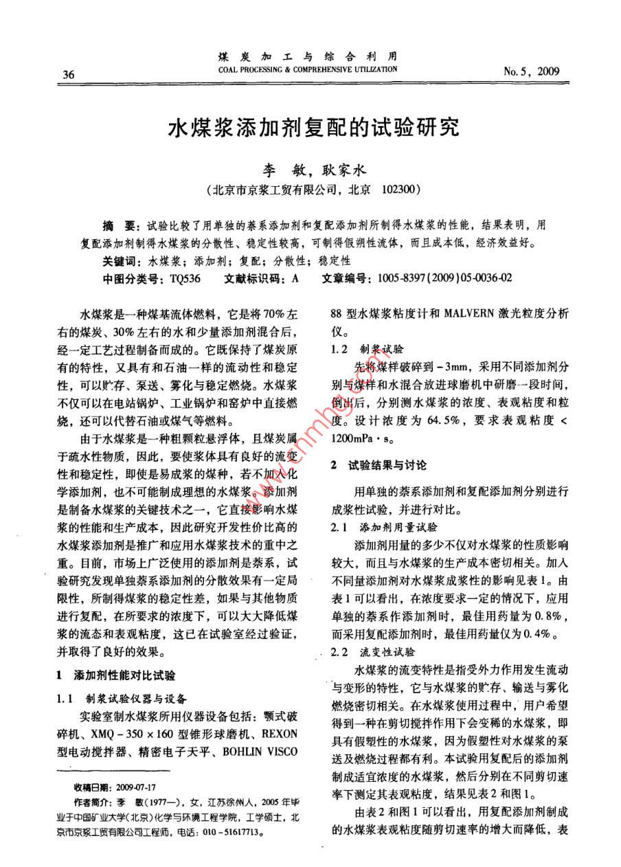 水煤漿添加劑復(fù)配的試驗(yàn)研究