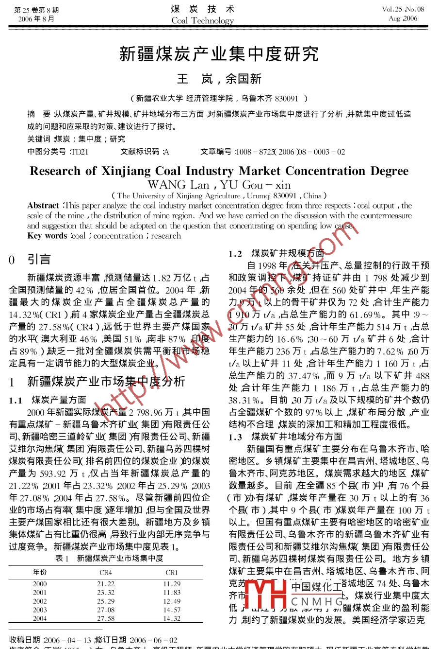 新疆煤炭產(chǎn)業(yè)集中度研究