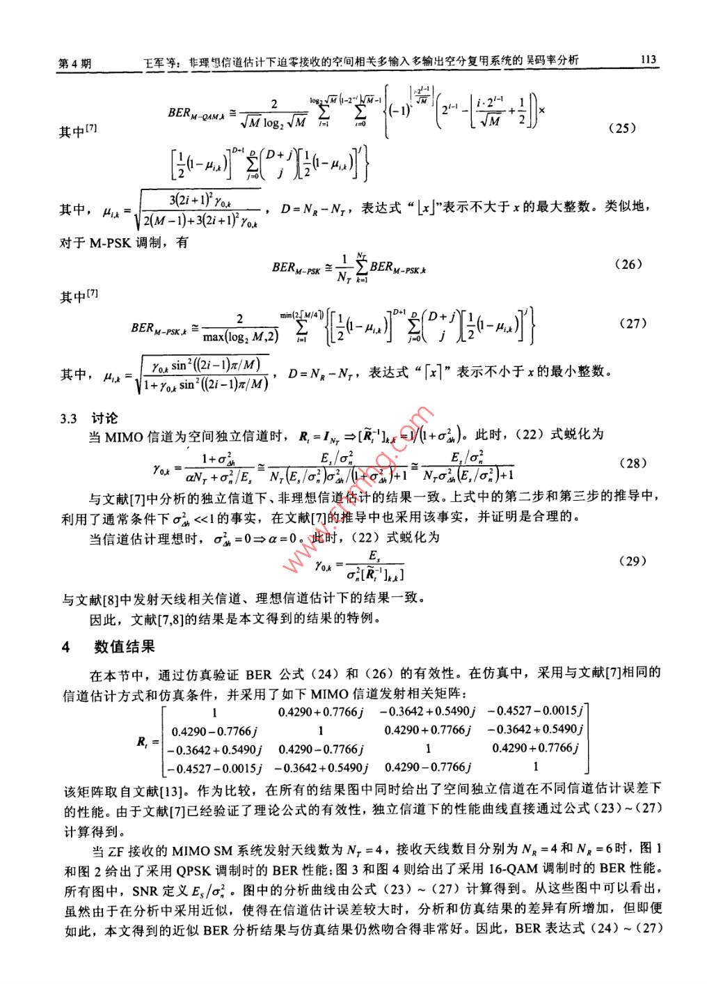 非理想信道估計(jì)下迫零接收的空間相關(guān)多輸入多輸出空分復(fù)用系統(tǒng)的誤碼率分析