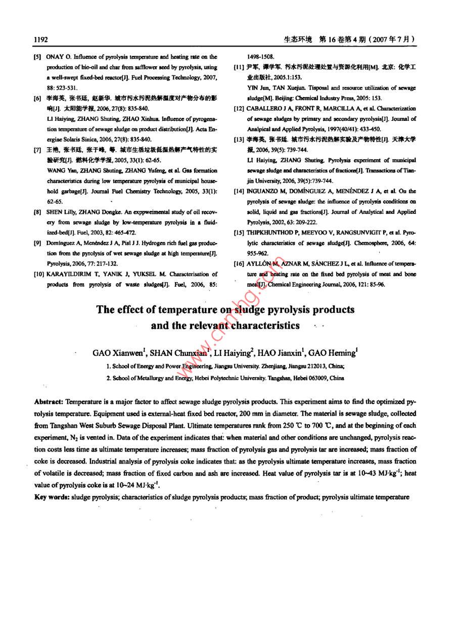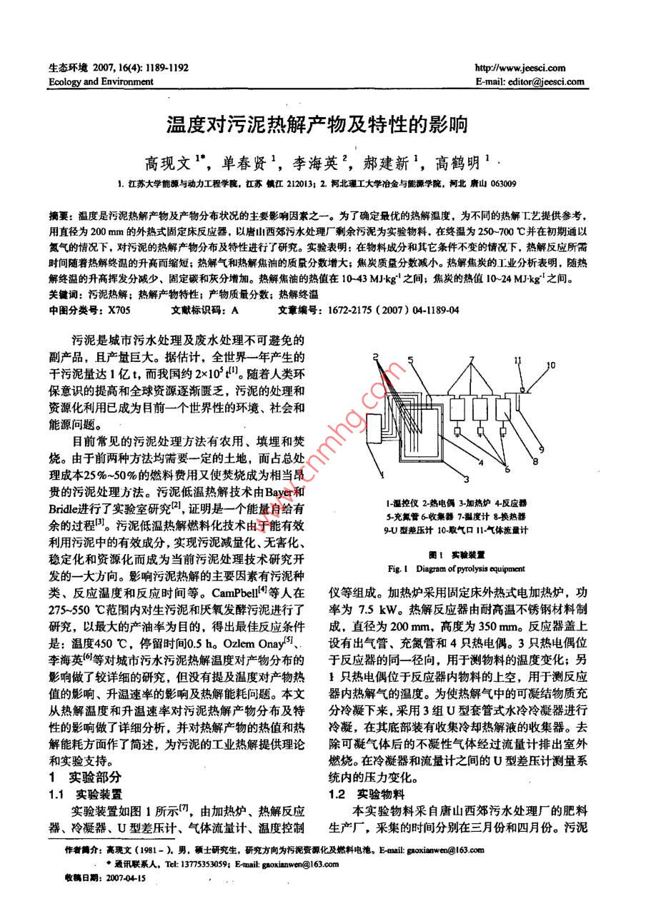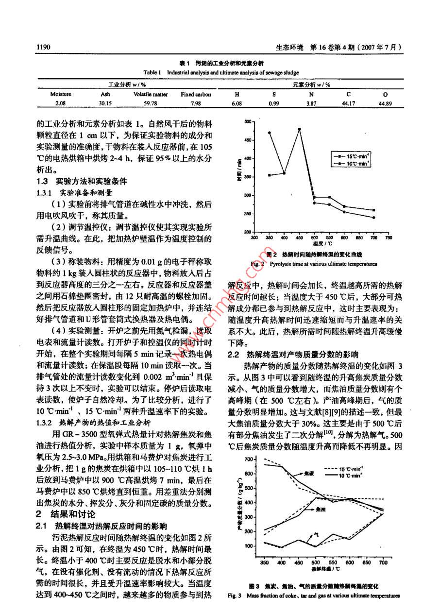 溫度對污泥熱解產(chǎn)物及特性的影響