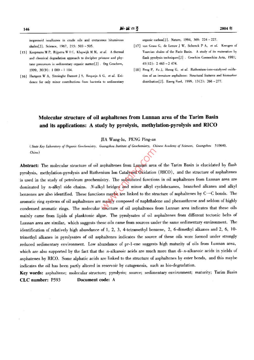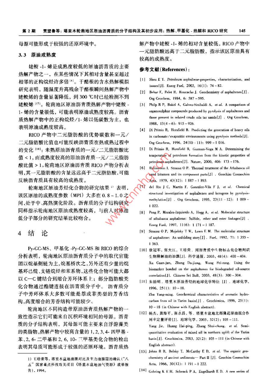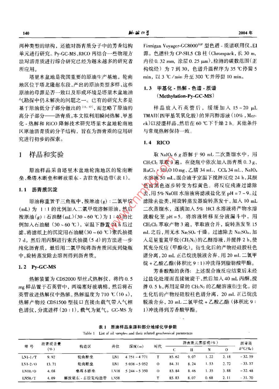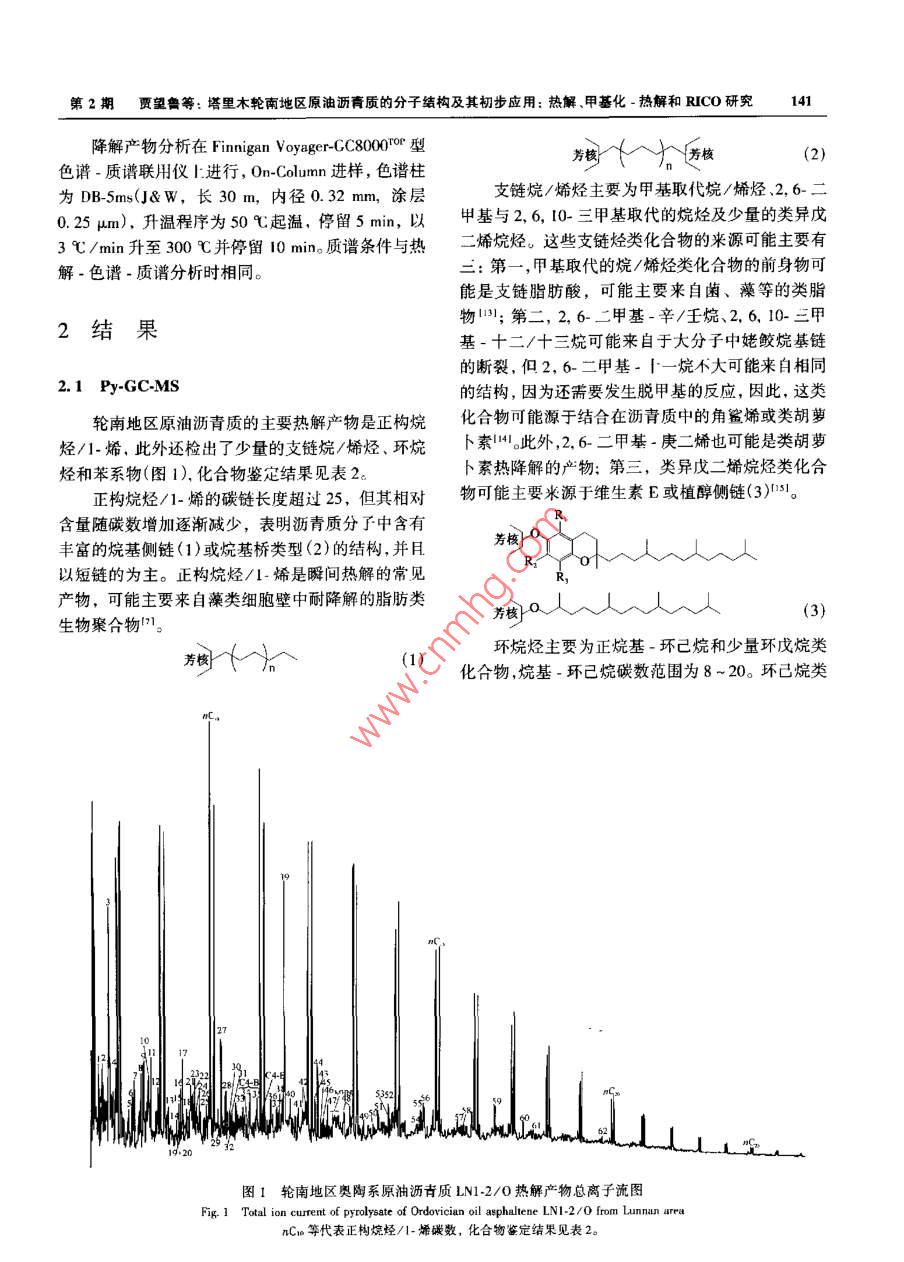 塔里木輪南地區(qū)原油瀝青質(zhì)的分子結(jié)構(gòu)及其初步應(yīng)用:熱解、甲基化-熱解和RICO研究 塔里木輪南地區(qū)原油瀝青質(zhì)的分子結(jié)構(gòu)及其初步應(yīng)用:熱解、甲基化-熱解和RICO研究