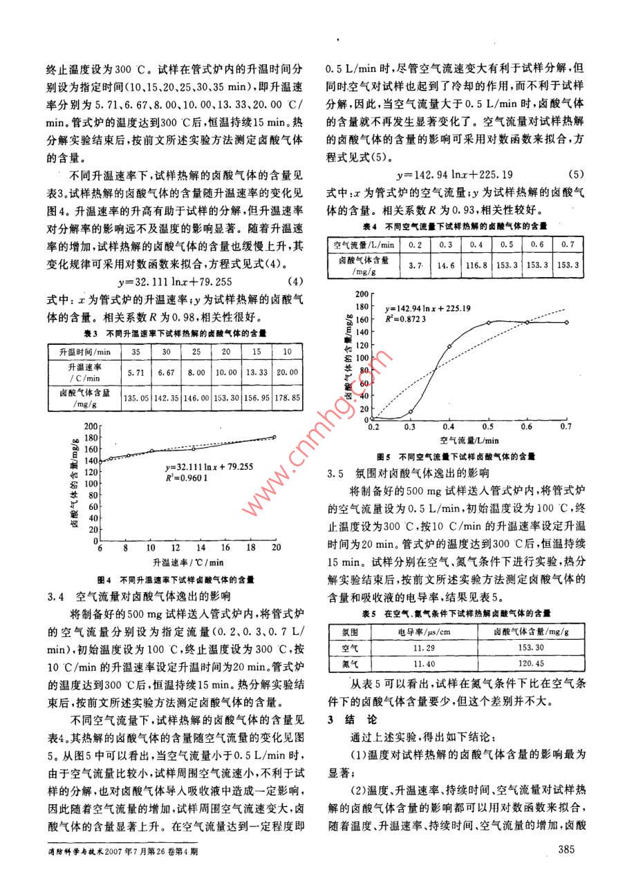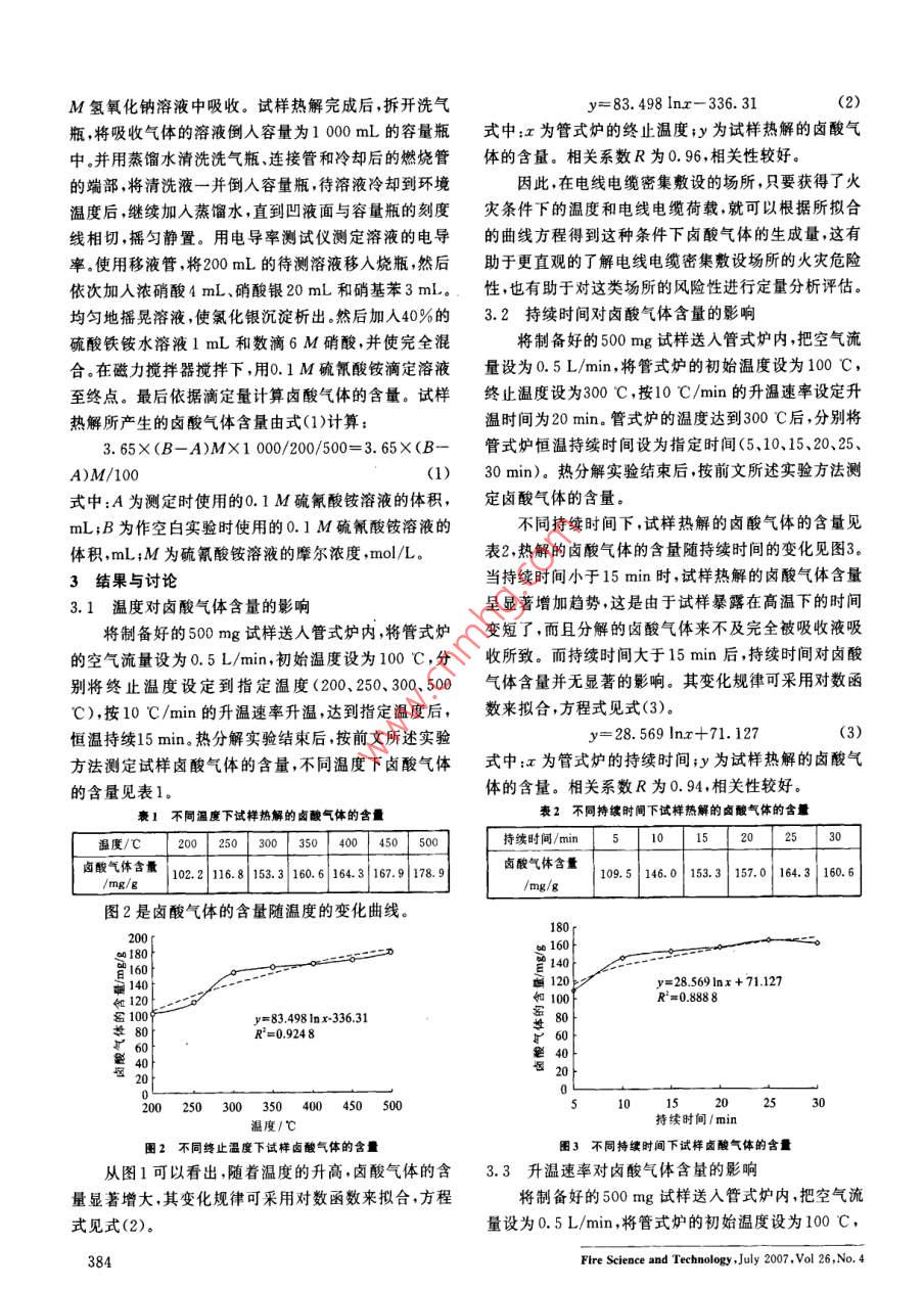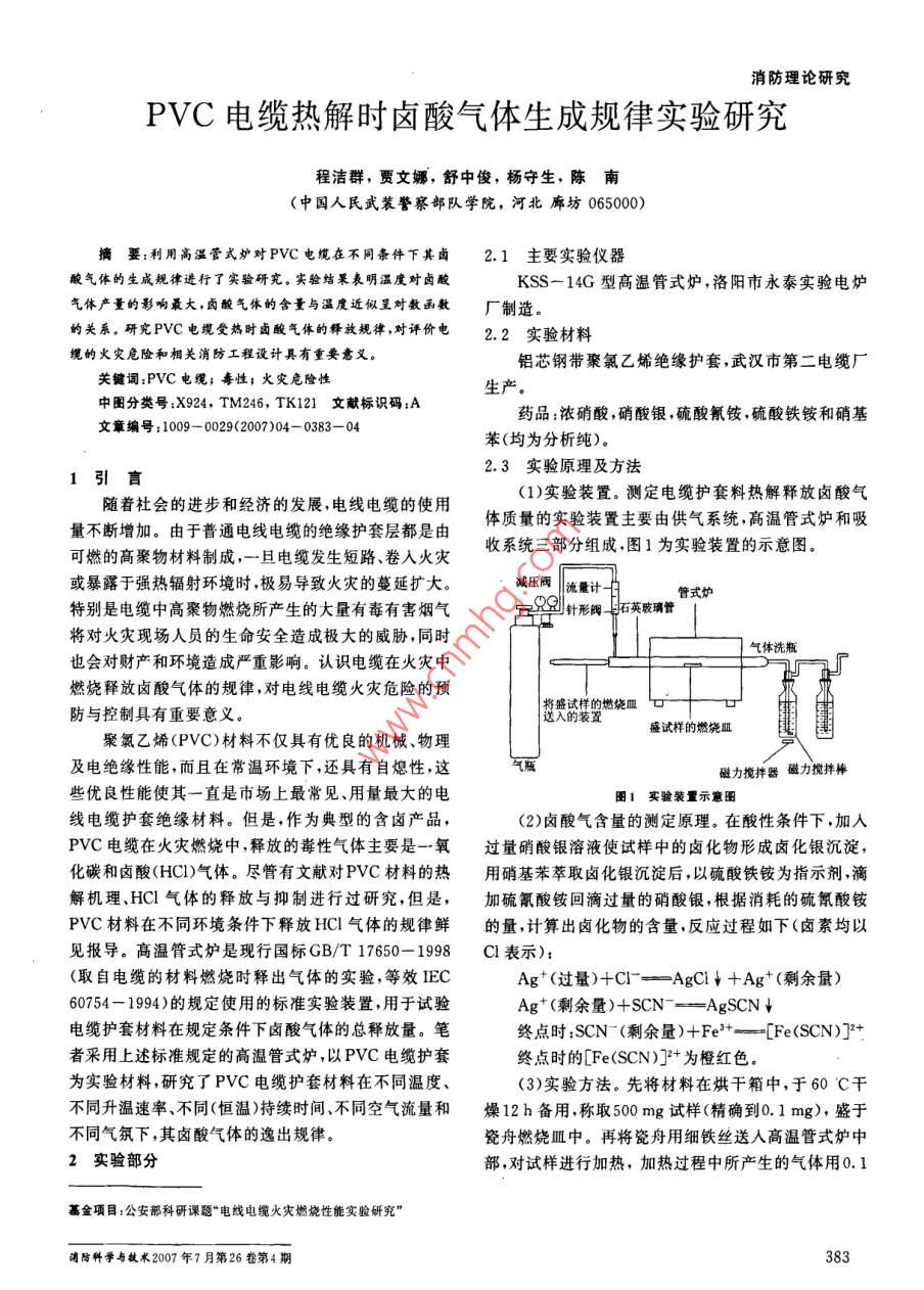 PVC電纜熱解時(shí)鹵酸氣體生成規(guī)律實(shí)驗(yàn)研究