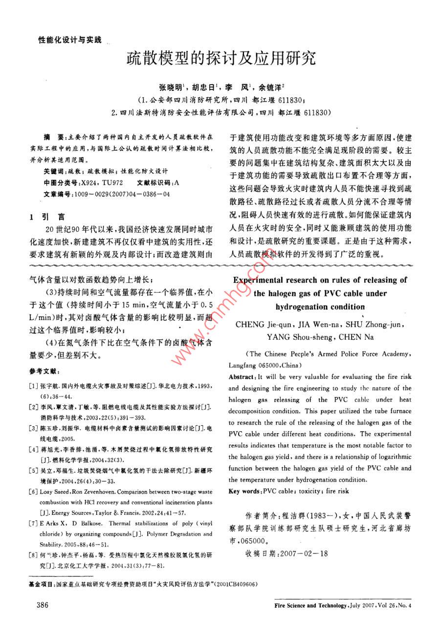- 期刊名字:消防科學(xué)與技術(shù)