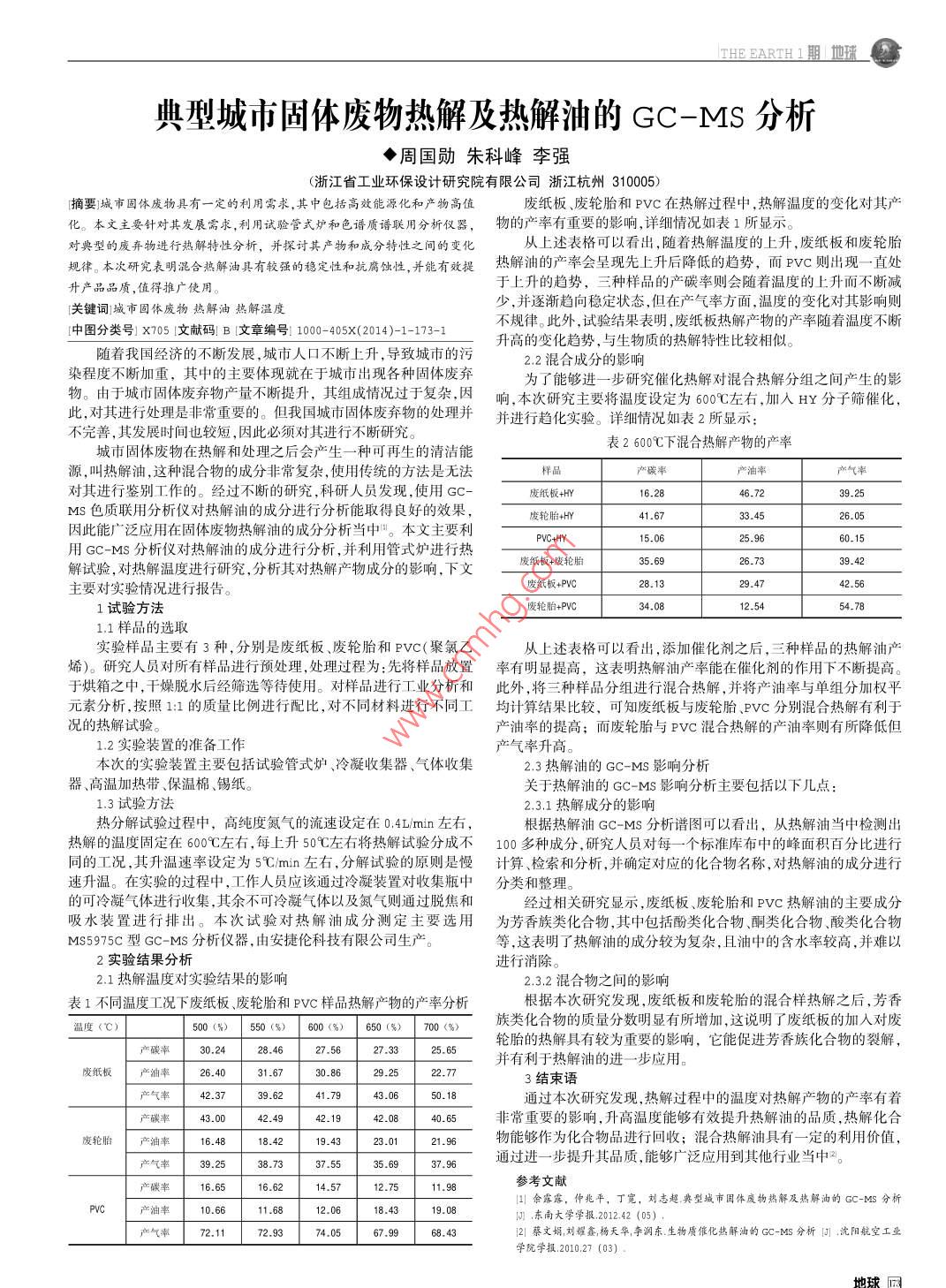 典型城市固體廢物熱解及熱解油的 GC-MS 分析