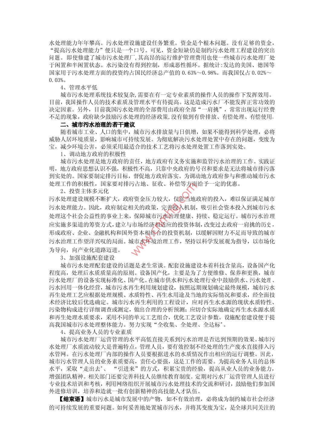 城市污水治理淺探