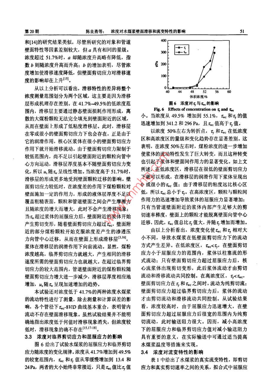 濃度對(duì)水煤漿壁面滑移和流變特性的影響