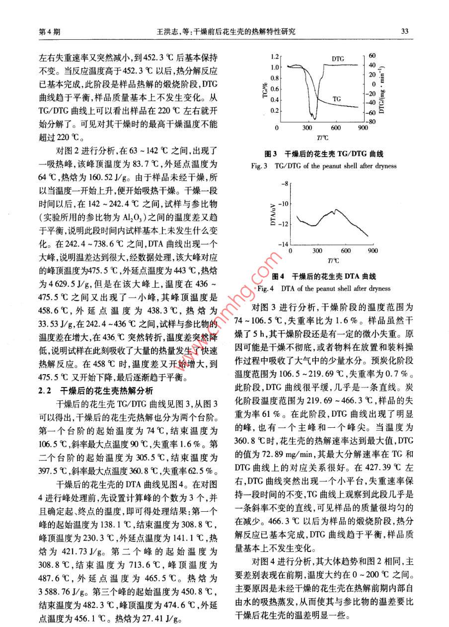 干燥前后花生殼的熱解特性研究