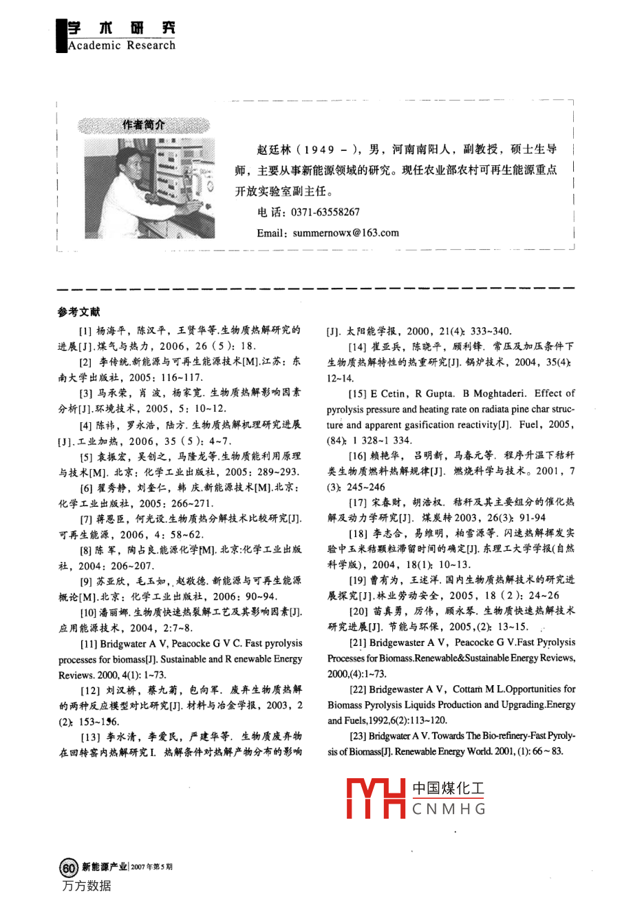 生物質(zhì)熱解研究現(xiàn)狀與展望